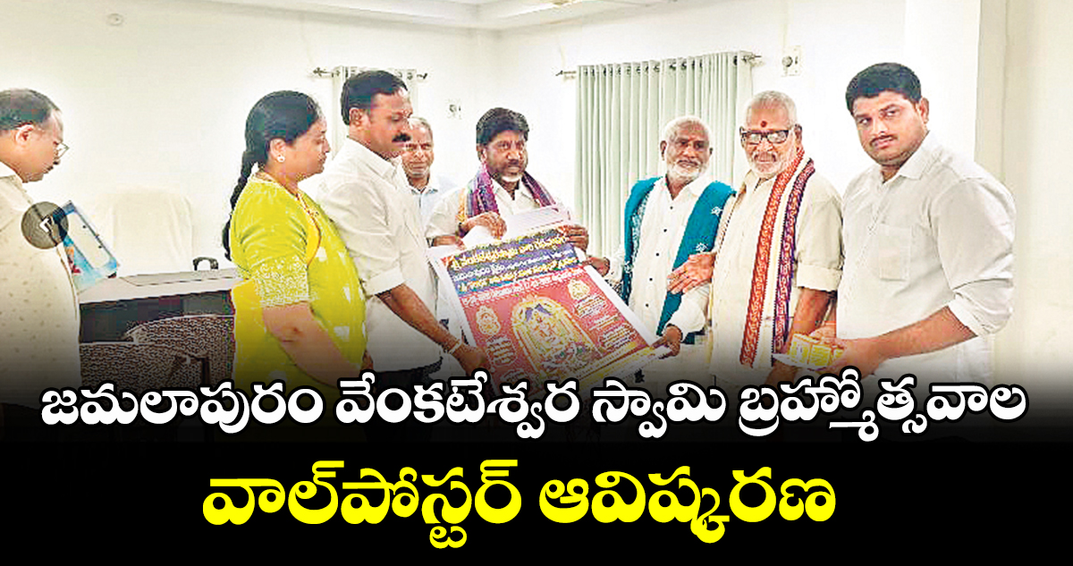 ఎర్రుపాలెం,వెలుగు: తెలంగాణ తిరుపతిగా ప్రసిద్ధి చెందిన జమలాపురం వేంకటేశ్వర స్వామి బ్రహ్మోత్సవాల వాల్పోస్టర్ను డిప్యూటీ సీఎం మల్లు భట్టి విక్రమార్క మధిరలో ని ఆయన క్యాంపు కార్యాలయంలో బుధవారం ఆవిష్కరించారు. ఈనెల 19 నుంచి 22 వరకు శ్రీవారి బ్రహ్మోత్సవాలు జరుగనున్నాయి.