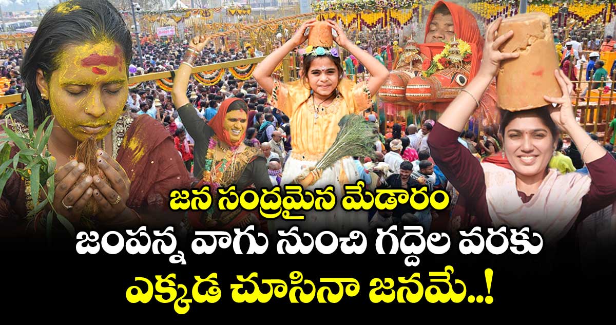 గంటగంటకు భక్తుల రద్దీ పెరగడంతో దర్శనానికి గంటల తరబడి సమయం పడుతుంది. కొత్తగా నిర్మించిన క్యూ లైన్ కాంప్లెక్స్ నిండిపోవడంతో జనం రోడ్డుపైన కిలోమీటర్ మేర క్యూ లైన్లో నిల్చున్నారు. శుక్రవారం (జనవరి 30) జాతర మూడో రోజు రాష్ట్ర నలుమూలల నుంచి భక్తులు పొటెత్తడంతో మేడారం జన సంద్రమైపోయింది.