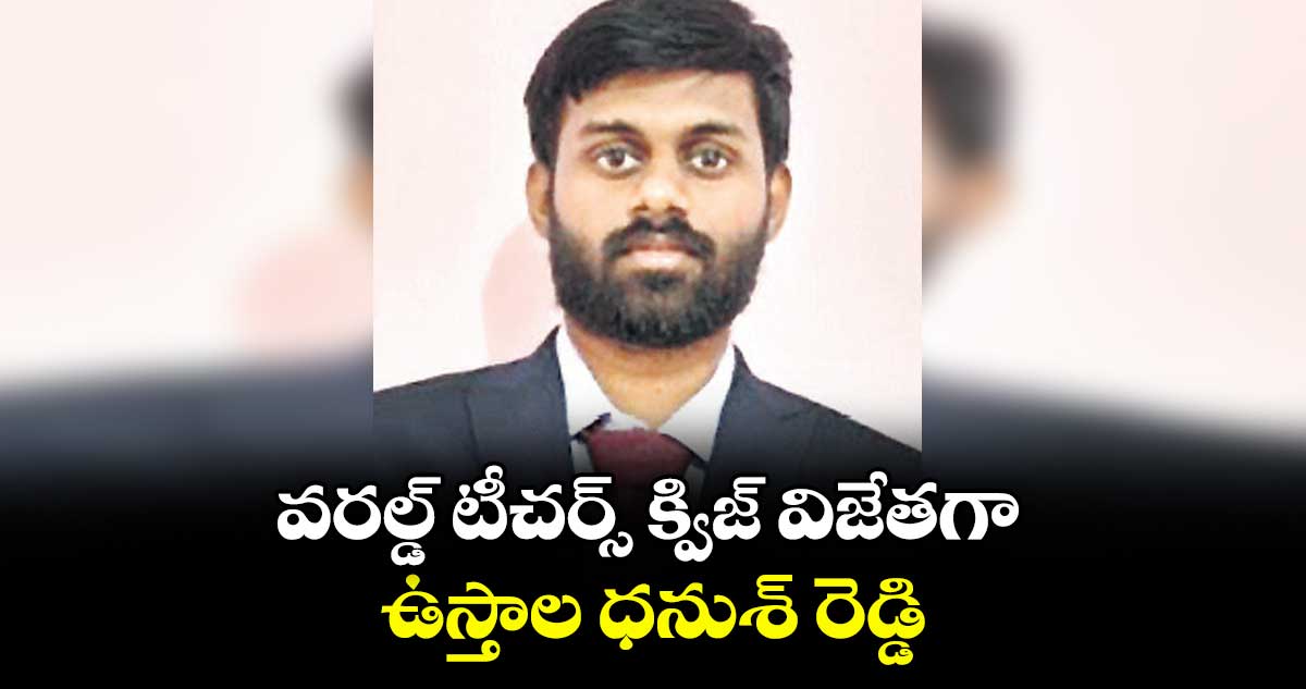 హైదరాబాద్, వెలుగు: ప్రపంచస్థాయి క్విజ్ పోటీల్లో సూర్యాపేట జిల్లా కోదాడకు చెందిన టీచర్ ఉస్తాల ధనుశ్ రెడ్డి విజేతగా నిలిచారు. బెంగళూరుకు చెందిన 'గ్రే కాప్స్', 'టీచర్స్ ట్రైబ్' సంస్థలు నిర్వహించిన ‘6వ వరల్డ్ టీచర్స్ క్విజ్ 2026’లో ఆయన టాపర్ గా నిలిచారు. మార్చి 1 నుంచి 28 వరకు ఆన్లైన్ వేదికగా జరిగిన పోటీల్లో ప్రపంచవ్యాప్తంగా 11 వేల మందికి పైగా టీచర్లు పాల్గొన్నారు.