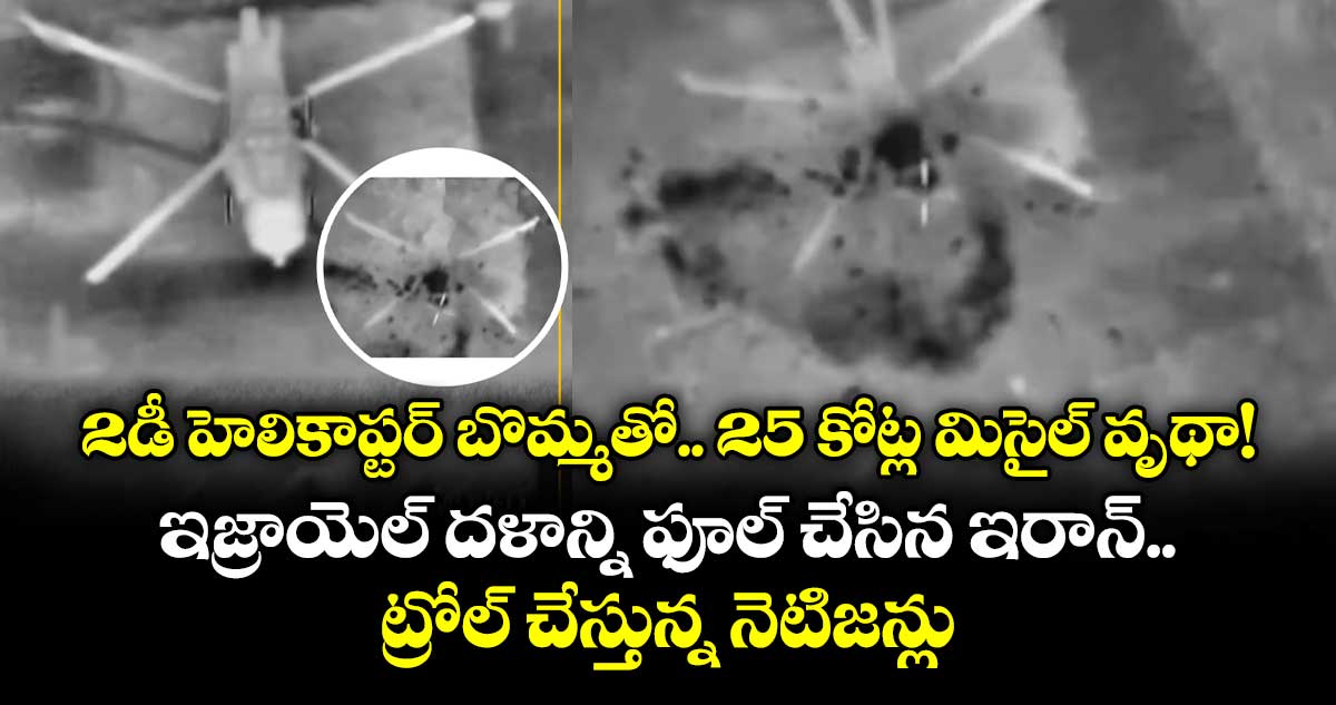 న్యూఢిల్లీ: ఇజ్రాయెల్, ఇరాన్ యుద్ధంలో జరిగిన ఓ వింత ఘటన ఇప్పుడు ప్రపంచవ్యాప్తంగా చర్చనీయాంశమైంది. ఇరాన్ దళాలు పెయింటింగ్తో వేసిన ఒక 2డీ సైనిక హెలికాప్టర్ బొమ్మను చూసి ఇజ్రాయెల్ సైన్యం నిజమైన హెలికాప్టర్ అని నమ్మేసింది. అంతేకాదు, దానిపై రూ. 25 కోట్ల విలువైన మిసైల్ ను వేసి పేల్చేసింది. వివరాల్లోకి వెళ్లితే..ఇజ్రాయెల్ సైన్యం ఈ నెల 4న ఓ వీడియోను సోషల్ మీడియాలో షేర్ చేసింది.