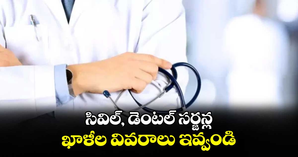 హైదరాబాద్, వెలుగు: రాష్ట్రంలో సివిల్, డెంటల్ సర్జన్ల ఖాళీల లెక్కలను అర్జెంట్గా పంపాలని హెల్త్ డిపార్ట్మెంట్ అధికారులకు డైరెక్టర్ ఆఫ్ హెల్త్ నుంచి ఆదేశాలు జారీ అయ్యాయి. ఈ మేరకు డైరెక్టర్ ఆఫ్ పబ్లిక్ హెల్త్ (డీపీహెచ్) ఆఫీస్ నుంచి మంగళవారం టాప్ ప్రయారిటీ మెమో రిలీజ్ అయ్యింది.