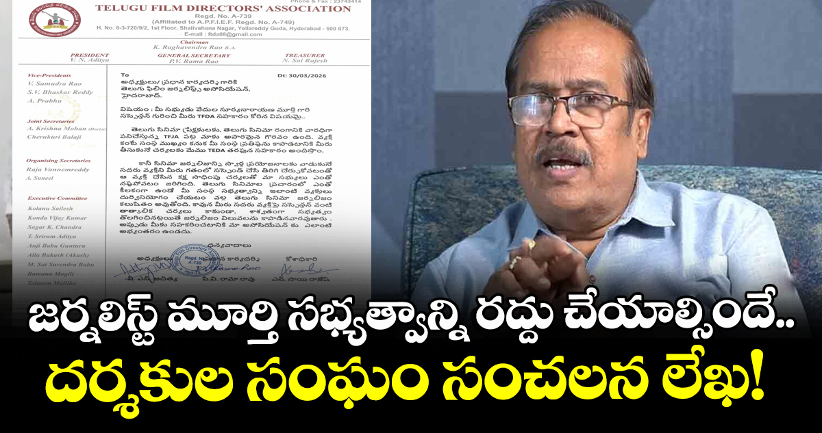 తెలుగు సినీ దర్శకుల సంఘం అధ్యక్షుడు వి.ఎన్. ఆదిత్య, ప్రధాన కార్యదర్శి పి.వి. రామారావు, కోశాధికారి ఎన్. సాయి రాజేష్ సంతకాలతో కూడిన ఈ లేఖలో సంచలన అంశాలను ప్రస్తావించారు. జర్నలిజం పేరుతో మూర్తి దర్శకులపై వ్యక్తిగత కక్షలు తీర్చుకుంటున్నారని, ఇది ఆరోగ్యకరమైన వాతావరణాన్ని దెబ్బతీస్తోందని ఆవేదన వ్యక్తం చేశారు. గతంలోనూ ఆయనపై ఆరు నెలల సస్పెన్షన్ విధించినా, తిరిగి సభ్యత్వం ఇవ్వడం వల్ల ఆయనలో మార్పు రాలేదని, అది పరిస్థితిని మరింత దిగజార్చిందని పేర్కొన్నారు. సినిమా ప్రచారంలో కీలక పాత్ర పోషించే జర్నలిస్టులు ఇలాంటి వివాదాల్లో ఉండటం ఇండస్ట్రీ ప్రతిష్టకు భంగకరమని, అందుకే ఆయన సభ్యత్వాన్ని శాశ్వతంగా రద్దు చేయాలని డిమాండ్ చేశారు.