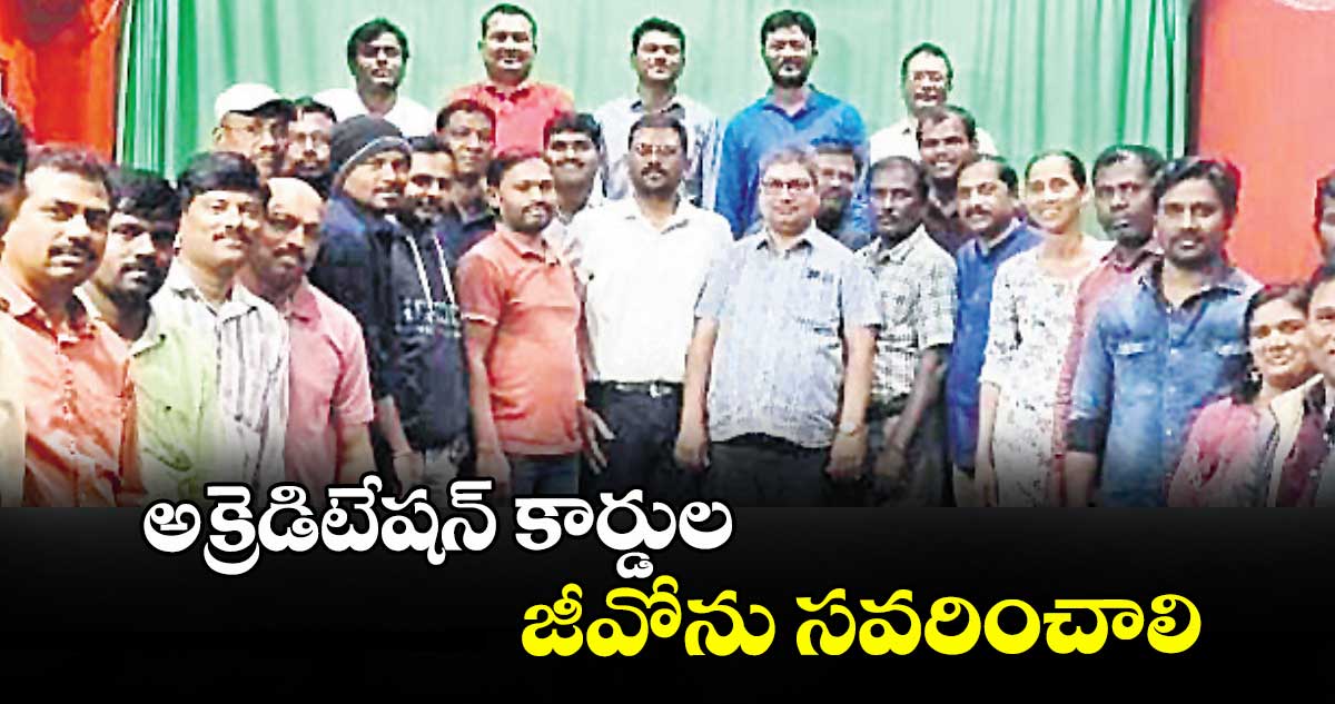 అక్రెడిటేషన్ కార్డులు, మీడియా కార్డులకు ఒకే రకమైన సంక్షేమ పథకాలు ఉంటాయని అధికారులు చెప్తున్నారని.. అలాంటప్పుడు రెండు కార్డులు తీసుకురావాల్సిన అవసరం ఏమిటని వారు ప్రశ్నించారు. గతంలో ఇచ్చినట్టు వర్కింగ్ జర్నలిస్టులందరికీ అక్రెడిటేషన్ కార్డులను ఇవ్వాలని డిమాండ్ చేశారు. ఈ సమావేశంలో హెచ్యూజే అధ్యక్ష, కార్యదర్శులు బి.అరుణ్ కుమార్, బి.జగదీశ్, టీడబ్ల్యూజేఎఫ్ ఉపాధ్యక్షుడు బి.రాజశేఖర్, రాష్ట్ర కార్యదర్శి నవీన్, డబ్ల్యూఐజే రాష్ట్ర సెక్రటరీ రావికంటి శ్రీనివాస్, పలువురు సీనియర్ రిపోర్టర్లు పాల్గొని మద్దుతు ప్రకటించారు.