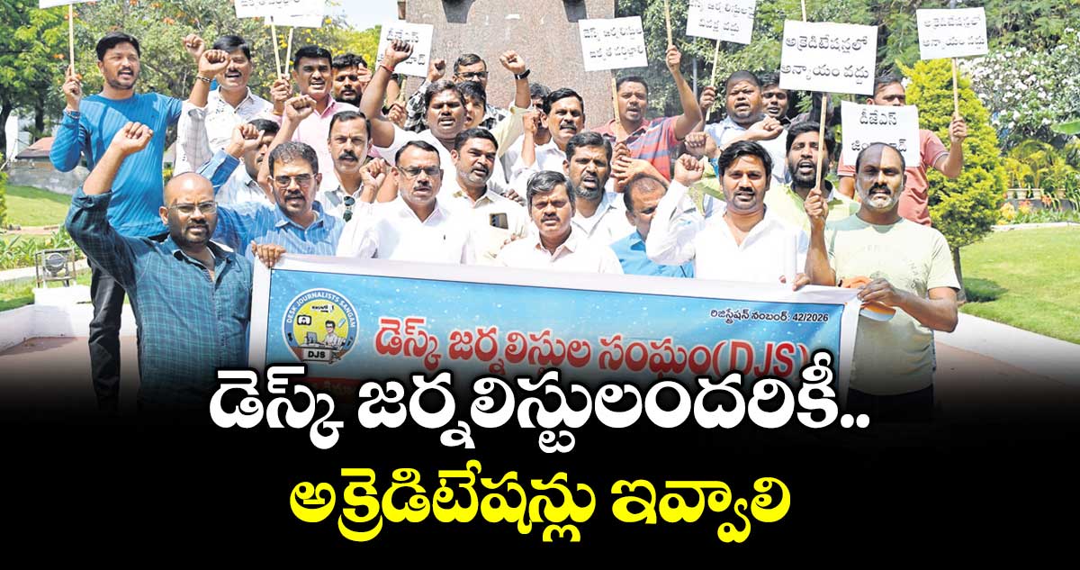 డెస్క్ జర్నలిస్టులందరికీ న్యాయం జరగాలంటూ స్లోగన్స్ ఇచ్చారు. అనంతరం తెలంగాణ మీడియా అకాడమీ వరకు ర్యాలీ నిర్వహించారు. అకాడమీ ఎదుట బైఠాయించి ఆందోళన చేపట్టారు. మీడియా అకాడమీ సెక్రటరీకి వినతి పత్రం అందజేసి తమ డిమాండ్లు తెలియజేశారు. ఈ సందర్భంగా డెస్క్ జర్నలిస్టుల సంఘం ప్రెసిడెంట్ బాదిని ఉపేందర్ మాట్లాడుతూ.. జీవో 252 ప్రకారం అక్రెడిటేషన్ జారీ చేస్తే డెస్క్ జర్నలిస్టులు అన్యాయానికి గురవుతారని తెలిపారు.