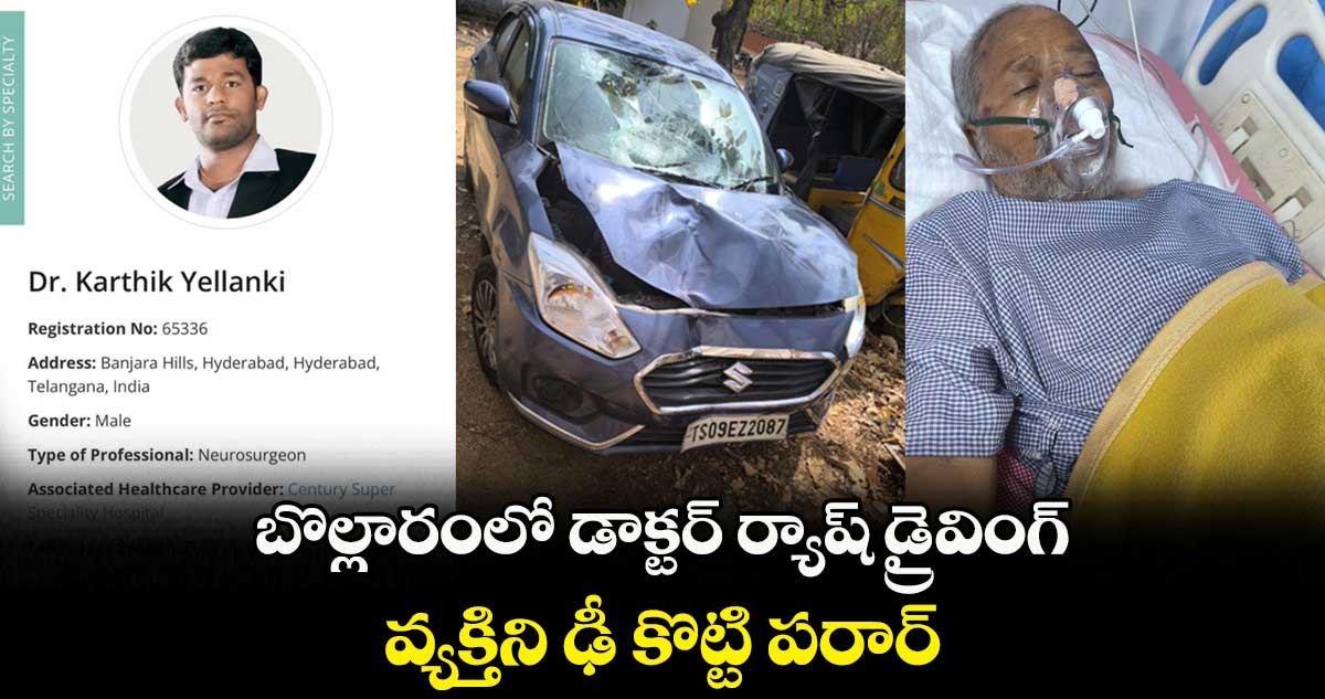 సంగారెడ్డి జిల్లా బొల్లారంలో కారు బీభత్సం సృష్టించింది. తోపుడుబండ్ల మీదకి దూసుకెళ్లింది కారు. ఈ ఘటనలో సయ్యద్ పాషా అనే వ్యక్తి తీవ్రంగా గాయపడ్డాడు. స్థానికులు కారు వెంటపడి అతడిని పట్టుకున్నారు. ప్రముఖ ఆసుపత్రిలో న్యూరో సర్జన్ గా పనిచేస్తున్న కార్తిక్ ఎల్లంకి కారుగా గుర్తించారు పోలీసులు. తన ఆసుపత్రిలో ట్రీట్మెంట్ చేయిస్తానని గాయపడ్డ పాషాను తీసుకువెళ్లాడు డాక్టర్ కార్తిక్.