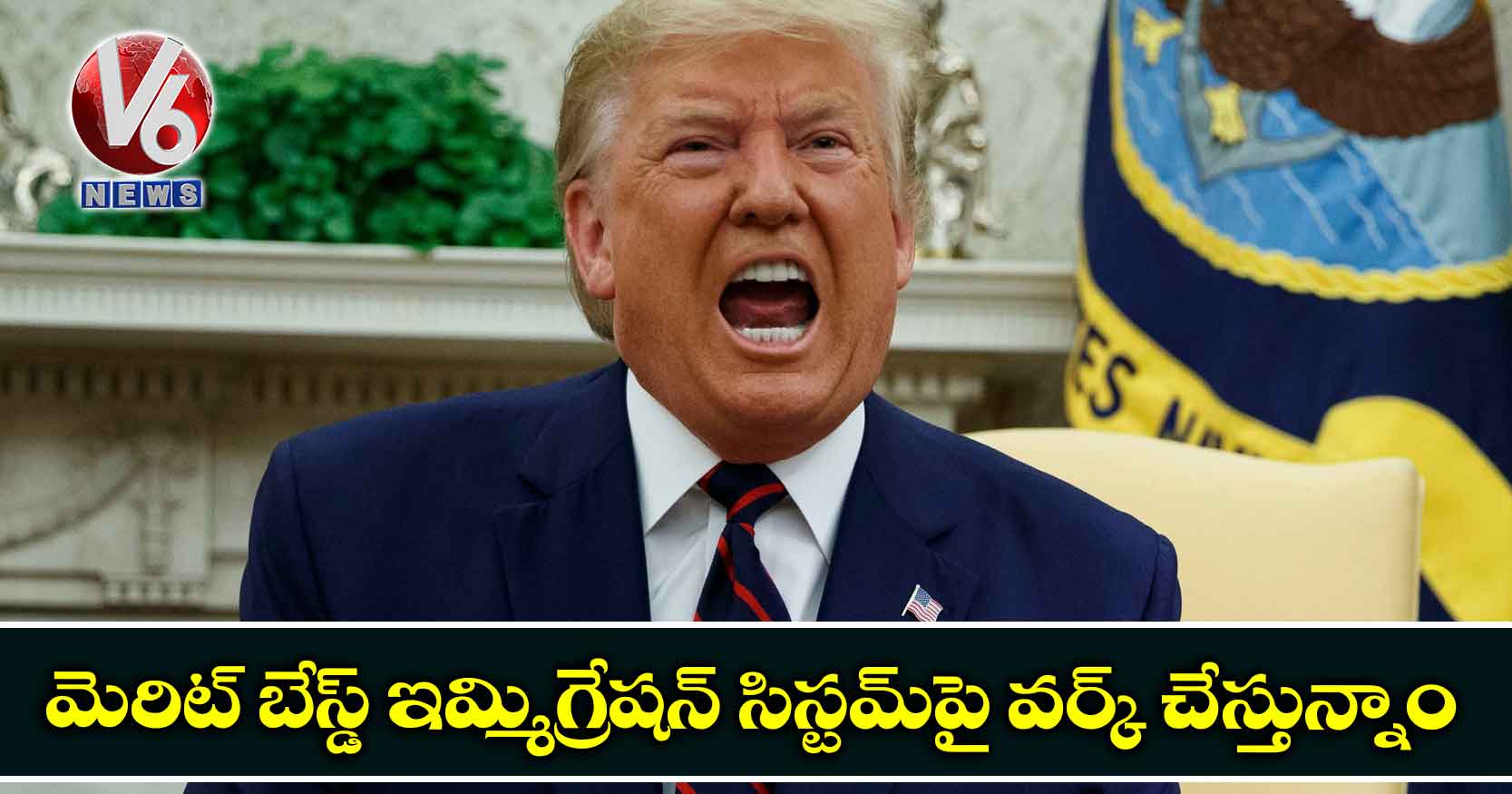 వాషింగ్టన్: మెరిట్ ఆధారిత ఇమ్మిగ్రేషన్ వ్యవస్థను ఏర్పాటు చేసే విధంగా కార్యనిర్వాహక ఉత్తర్వులను తీసుకొచ్చేందుకు అమెరికా అధ్యక్షుడు డొనాల్డ్ ట్రంప్ కృషి చేస్తున్నారని వైట్హౌస్ చెప్పింది. టెలిముండో న్యూస్ ఛానెల్కు ట్రంప్ ఇచ్చిన ఇంటరవ్యూలో ఇమ్మిగ్రేషన్పై మాట్లాడిన తర్వాత వైట్హౌస్ ఈ ప్రకటన చేసింది. డిఫర్డ్ యాక్షన్ ఫర్ చైల్డ్ హుడ్ అరైవల్స్ (డీఏసీఏ) ప్రోగ్రామ్ కింద పౌరసత్వానికి మార్గం ఏర్పడుతుంది అని ట్రంప్ చెప్పారు. “ అది చాలా పెద్ద, మంచి బిల్లు అవ్వబోతోంది. మెరిట్ ఆధారిత బిల్లు, దాంట్లో డీఏసీఏ కూడా ఉంటుంది. దీని వల్ల ప్రజలు చాలా ఆనంద పడతారు” అని ట్రంప్ అన్నారు. యూఎస్ వర్కర్స్ను మరింత రక్షించేందుకు మెరిట్ ఆధారిత ఇమ్మిగ్రేషన్ వ్యవస్థను ఏర్పాటు చేయడానికి ఎగ్జిక్యూటివ్ ఆర్డర్ను తీసుకొచ్చేందుకు కృషి చేస్తున్నట్లు వైట్హౌస్ స్టేట్మెంట్ రిలీజ్ చేసింది. బలమైన సరిహద్దు భద్రత, శాశ్వత మెరిట్ ఆధారిత సంస్కరణలతో పాటు పౌరసత్వాన్ని చేర్చగలిగే డీఏసీఏకు శాసన పరిష్కరం కోసం కాంగ్రెస్తో కలిసి పనిచేసేందుకు సిద్ధంగా ఉన్నానని ట్రంప్ చెప్పారని వైట్ హౌస్ చెప్పింది.