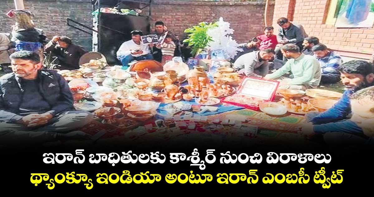 విరాళాలకు సంబంధించిన ఫొటోలు, వీడియోలను సోషల్ మీడియాలో షేర్ చేసింది. ‘‘తమ మానవతా సహాయం, హృదయపూర్వక సంఘీభావంతో ఇరాన్ ప్రజలకు అండగా నిలిచిన కాశ్మీర్ ప్రజలకు మేము కృతజ్ఞతాపూర్వక హృదయపూర్వక ధన్యవాదాలు తెలియజేస్తున్నాం. ఈ ప్రేమను మేం ఎప్పటికీ మరిచిపోము. థ్యాంక్యూ ఇండియా’’ అని రాయబార కార్యాలయం ఎక్స్లో పోస్ట్చేసింది.