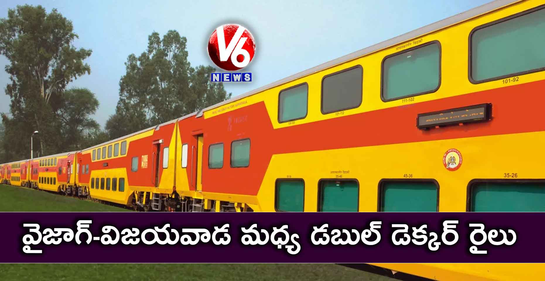 వైజాగ్-విజయవాడ వాసులకు గుడ్ న్యూస్ చెప్పింది రైల్వే. ప్రయాణీకుల సౌకర్యార్థం వైజాగ్-విజయవాడ మధ్య డబుల్ డెక్కర్ రైలు పరుగులు తీయనుంది. ఈ నెల 26న వైజాగ్-విజయవాడ మధ్య డబుల్ డెక్కర్ రైలు ఉదయ్ ఎక్స్ ప్రెస్ ప్రారంభం కానుంది. రైల్వేశాఖ సహాయమంత్రి సురేశ్ అంగడి ప్రారంభించనున్నట్టు అధికారులు తెలిపారు. వైజాగ్ నుంచి ప్రతిరోజు ఉదయం 5.45 గంటలకు బయలుదేరి.. ఉ.11.15 గంటలకు విజయవాడ చేరుతుంది. విజయవాడలో సాయంత్రం 5.30 గంటలకు బయలుదేరి.. రాత్రి 11 గంటలకు వైజాగ్ కు ఈ రైలు చేరుతుందని అధికారులు తెలిపారు.