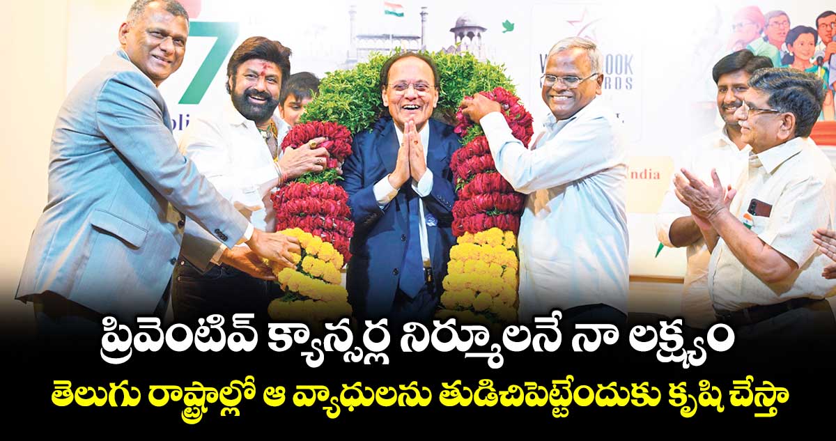హైదరాబాద్, వెలుగు: కొన్ని రకాల క్యాన్సర్లను టీకాలతో నివారించవచ్చని, అలాంటి వ్యాధులను నిర్మూలించడమే లక్ష్యంగా పని చేస్తానని ప్రముఖ ఆంకాలజిస్ట్, పద్మభూషణ్ విజేత డాక్టర్ నోరి దత్తాత్రేయుడు అన్నారు. నివారించదగ్గ క్యాన్సర్ వ్యాధులను తెలుగు రాష్ట్రాల నుంచి పూర్తిగా తుడిచిపెట్టేందుకు కృషి చేస్తానని చెప్పారు. 77వ రిపబ్లిక్ డే సందర్భంగా సోమవారం హైదరాబాద్ లోని బసవతారకం ఇండో అమెరికన్ క్యాన్సర్ హాస్పిటల్ లో జరిగిన వేడుకల్లో డాక్టర్ నోరి పాల్గొన్నారు. కేంద్ర ప్రభుత్వం తనకు పద్మభూషణ్ అవార్డును ప్రకటించిన నేపథ్యంలో ఆయన మీడియాతో మాట్లాడారు.