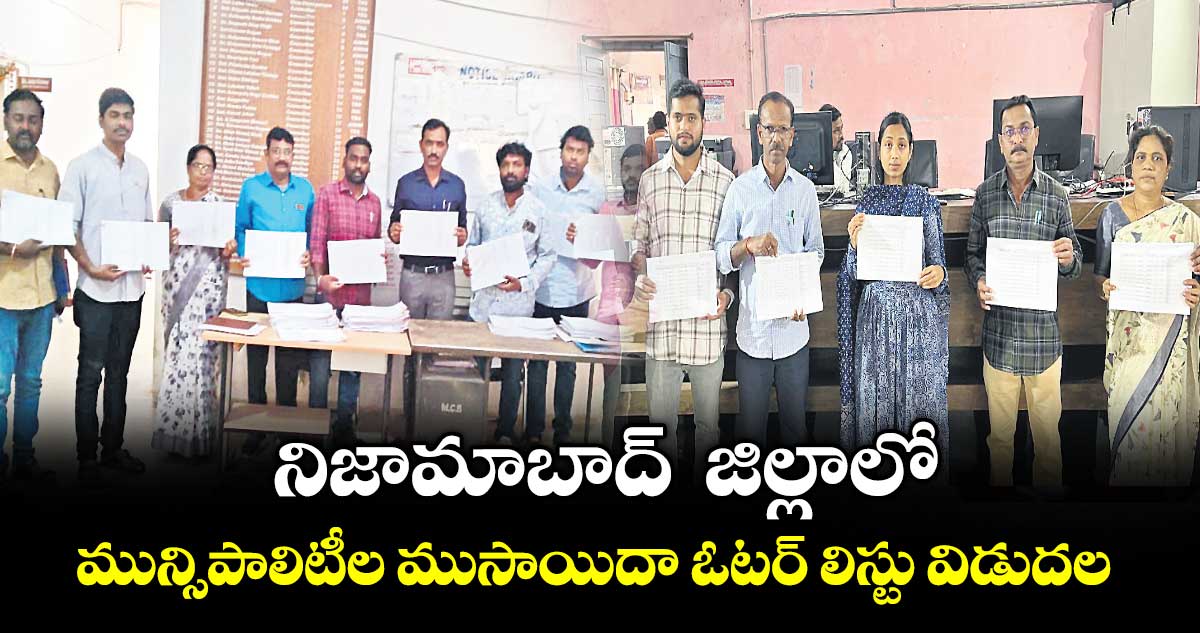 నిజామాబాద్/కామారెడ్డి, వెలుగు : జిల్లాలోని నగర పాలక సంస్థ, మూడు మున్సిపాలిటీలకు చెందిన ముసాయిదా ఓటర్ లిస్టు గురువారం విడుదల చేశారు. ఎలక్షన్ కమిషన్ ఆదేశాల మేరకు వార్డుల సంఖ్యతో పాటు ఓటర్ లిస్ట్ను ప్రకటించారు. ఈనెల 5న పొలిటికల్ పార్టీలతో మీటింగ్ నిర్వహించి వీటిపై అభ్యంతరాలుంటే స్వీకరిస్తారు. 6న ఆఫీసర్లు సమావేశం తర్వాత 10న ఫైనల్ లిస్టు ప్రకటిస్తారు.
