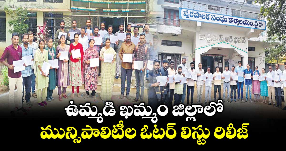భద్రాద్రికొత్తగూడెం/ఖమ్మం, వెలుగు: మున్సిపల్ ఎన్నికల ఓటర్ల ముసాయిదా జాబితాను అధికారులు విడుదల చేశారు. ఉమ్మడి ఖమ్మం జిల్లాలోని కార్పొరేషన్లు, మున్సిపల్ కార్యాలయాల్లో గురువారం ముసాయిదా జాబితాను నోటీసు బోర్డులో అంటించారు. దీనిపైఅభ్యంతరాలు స్వీకరించి ఫైనల్ జాబితాను 10న రిలీజ్ చేయనున్నారు. కొత్తగూడెం కార్పొరేషన్తో పాటు ఇల్లెందు, అశ్వారావుపేట మున్సిపాలిటీలలో మొత్తం ఓటర్లు 1,85,750మందిగా నమోదయ్యారు.