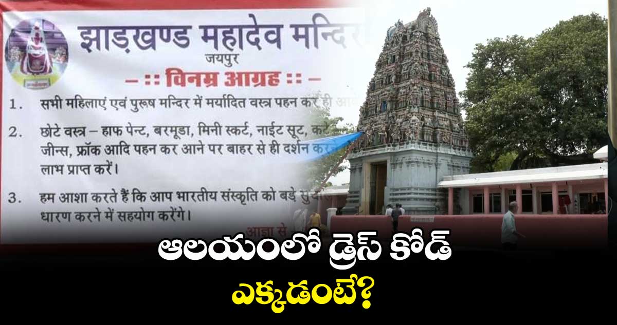 రాజస్థాన్ రాష్ట్రం జైపుర్ కొలువైన జార్ఖండ్ మహాదేవ్ ఆలయ నిర్వాహకులు భక్తులకు డ్రెస్ కోడ్ ప్రవేశపెట్టారు. పరమ శివుడు కొలువైన ఈ దేవాలయంలోకి ఫార్ట్, మినీ స్కర్ట్లు, రిఫ్డ్ జీన్స్, ఫ్రాక్స్, నైట్ డ్రెస్సులు ధరించి రావద్దని ఆలయ కమిటీ ప్రతినిధులు ప్రకటించారు. ఇందుకు సంబంధించి ఆలయం బయట బ్యానర్లు ఏర్పాటు చేశారు. ఇందులో ఏమేం దుస్తులు ధరించాలో.. ఏమేం కూడదో వివరాలు తెలిపారు. ట్రెడిషనల్ దుస్తులు ధరించిన వారికి మాత్రమే ఆలయంలో ప్రవేశం ఉంటుందన్నారు.