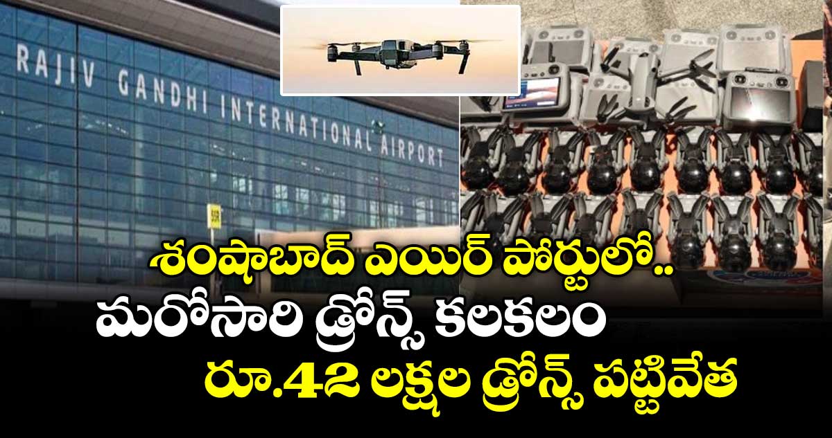 మహమ్మద్, తాజ్, అస్గర్ అనే ముగ్గురు ప్రయాణికులు సింగపూర్ నుండి తిరుగు ప్రయాణంలో 74 డ్రోన్లను ఇండియాకు తరలిస్తూ పట్టబడ్డారు. డ్రోన్లను సామగ్రిలో పెట్టుకుని వేర్వేరు విమానాల్లో శంషాబాద్ కి వచ్చినట్లు గుర్తించారు. సామగ్రిన తనిఖీల్లో 42 లక్షల రూపాయల విలువైన డ్రోన్లు పట్టుబడటంతో అదుపులోకి తీసుకుని విచారిస్తున్నారు కస్టమ్స్ అధికారులు.