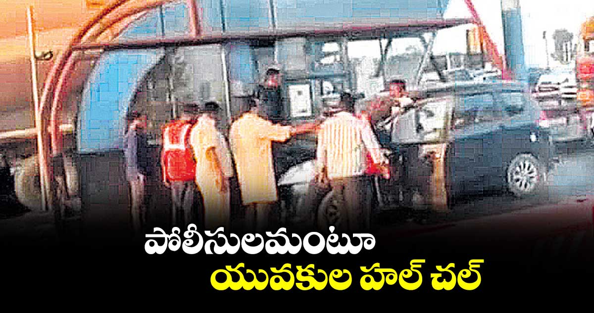 హల్ చల్ చేసిన యువకులు సూర్యాపేట నుంచి నకిరేకల్ వైపు కారులో వెళ్తూ టోల్ ఫీజు చెల్లించకుండా కార్డులు చూపించి తప్పించుకునేందుకు యత్నించారు. మద్యం మత్తులోని యువకులు నకిరేకల్ మండలం చందుపట్లకు చెందినవారని తెలిసిందని కేతేపల్లి ఎస్ఐ సతీష్ చెప్పారు.