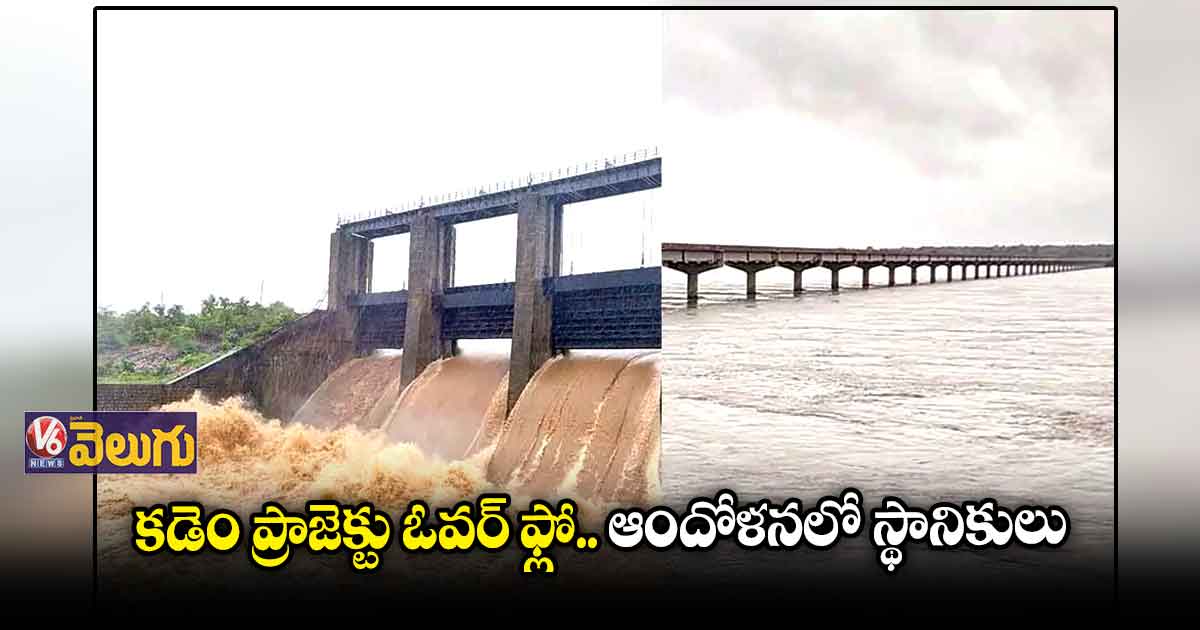 నిర్మల్ జిల్లా కడెం ప్రాజెక్టు వద్ద మళ్ళీ టెన్షన్ వాతావరణం నెలకొంది. జలాశయంలోకి భారీగా వరద చేరుతోంది. పవర్ హౌస్ నుంచి ఓవర్ ఫ్లో అవుతోంది. ఆ వరద నీరు కడెం గ్రామంలోకి చేరుతుండటంతో గ్రామస్థులు ఆందోళన చెందుతున్నారు. ప్రాజెక్టు నుంచి వరద నీరు కిందకు దుంకుతుండటంతో నవాబు పేట్, అంబారి పేట్, దేవునిగూడెం, దాస్తురాబాద్, పెరకపల్లి, మున్యాల్, రేవోజి పేట్, మల్లాపూర్, కలమడుగు, మురిమడుగు, జన్నారం ప్రాంత ప్రజలకు ప్రమాదం పొంచి ఉంది. దీంతో అధికారులు వారిని సురక్షిత ప్రాంతాలకు తరలించే ప్రయత్నం చేస్తున్నారు.