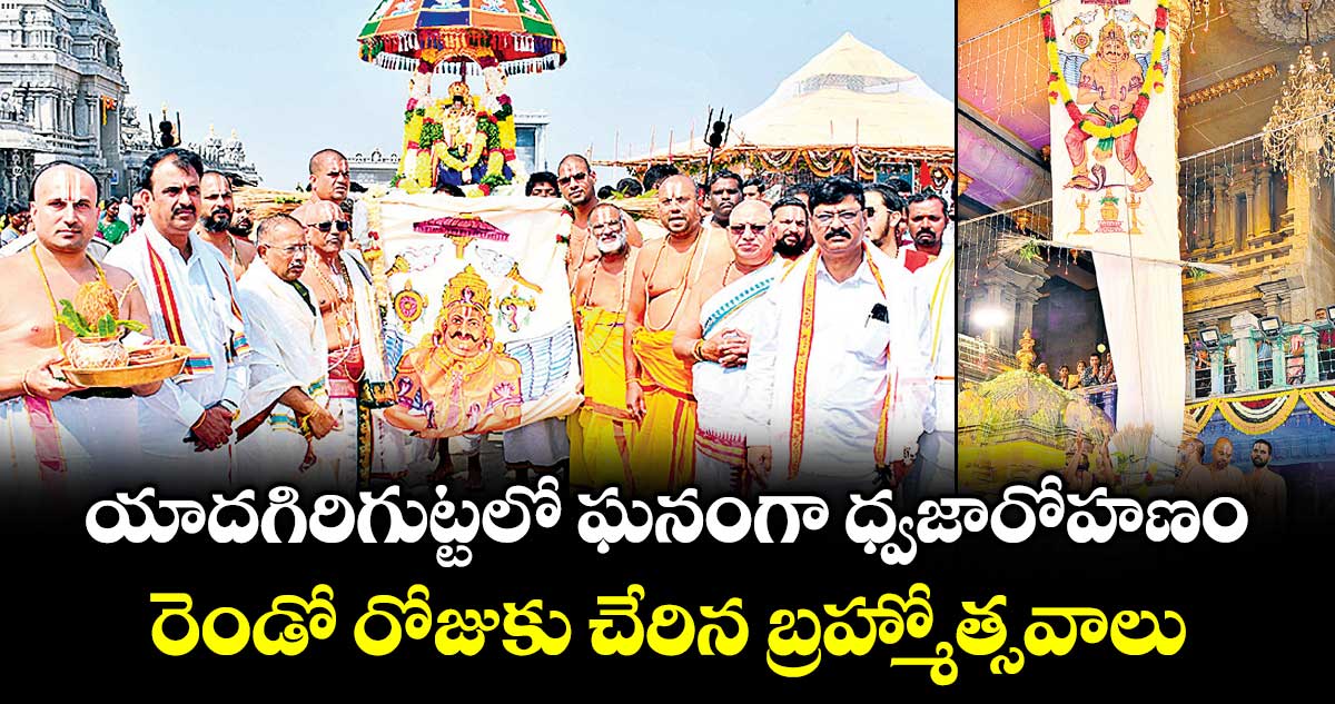 యాదగిరిగుట్ట, వెలుగు : యాదగిరిగుట్ట శ్రీలక్ష్మీనరసింహస్వామి ఆలయ వార్షిక బ్రహ్మోత్సవాల్లో భాగంగా గురువారం ధ్వజారోహణం, అగ్నిప్రతిష్ఠ, భేరిపూజ, దేవతాహ్వానం, హవనం నిర్వహించారు. ఉదయం ఆలయ ప్రధానార్చకులు కాండూరి వెంకటాచార్యులు, సురేంద్రాచార్యుల ఆధ్వర్యంలో అర్చకులు, వేదపండితులు, యజ్ఞాచార్యులు ప్రత్యేక పూజలతో యజ్ఞశాలలో హోమం కాల్చి, వేదపారాయణికులతో చతుర్వేద పారాయణాలు, మూలమంత్ర, మూర్తిమంత్ర జపాల నడుమ ధ్వజారోహణాన్ని నిర్వహించారు.