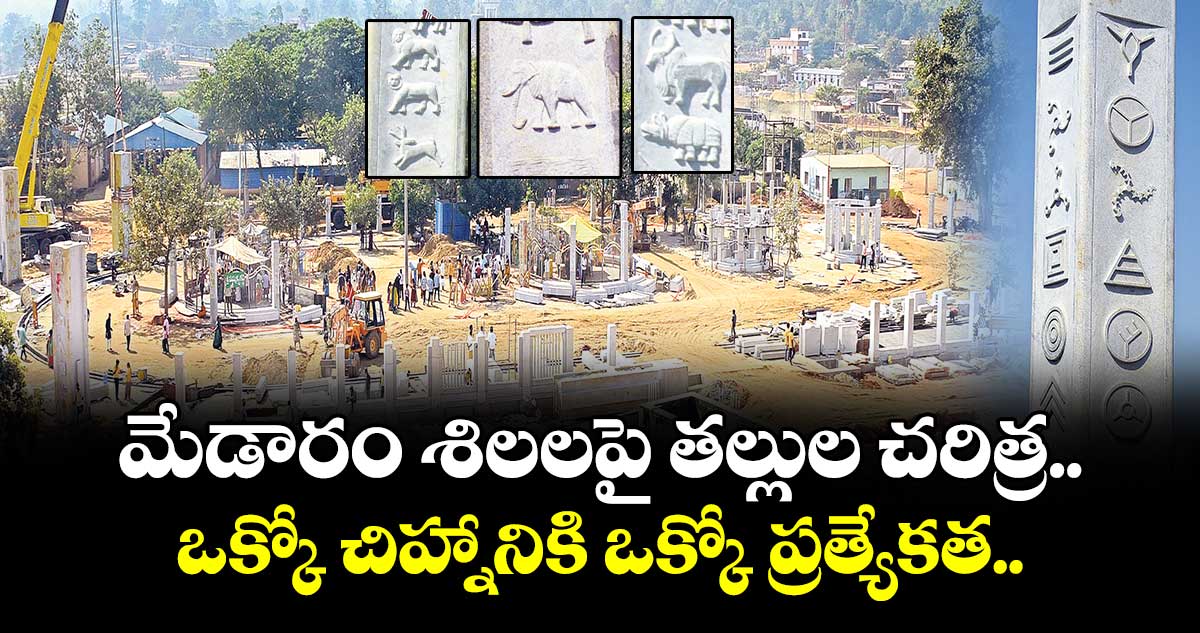 ఆదివాసీ కుంభమేళాగా ప్రసిద్ధి చెందిన మేడారంలో పునరుద్ధరణ పనులను ప్రభుత్వం ప్రతిష్టాత్మకంగా చేపడ్తున్నది. మరో వందేండ్లయినా చెక్కుచెదరకుండా ఉండేలా గ్రానైట్తో గద్దెలు, వాటి చుట్టూ స్తంభాలు, స్వాగత తోరణాలను ఏర్పాటు చేస్తున్నది. కోయల ఆచార సంప్రదాయాలకు తగ్గట్టుగా పనులు చేపడుతూ.. సమ్మక్క, సారక్క తల్లుల చరిత్ర అందరికీ తెలిసేలా శిలలపై చెక్కుతున్నది. కోయల వద్ద దొరికిన 930 ఏండ్ల నాటి తాళపత్ర గ్రంథాల ఆధారంగా చెక్కించిన ఏడు వేల శిల్పాలు, చిహ్నాలు ప్రత్యేక ఆకర్షణగా నిలుస్తున్నాయి. సమ్మక్క, సారక్క, పగిడిద్దరాజు, గోవిందరాజు, కోయల ఇష్టదైవాలకు ప్రతిరూపంగా భావించే పులి, జింక, దుప్పి, పావురం, ఏనుగు, నెమలి, మొసలి, పశుపక్ష్యాదులతో పాటు కోయల జీవనశైలికి, ఆచార సంప్రదాయాలకు, గొట్టుగోత్రాలకు ప్రతిరూపంగా భావించే సూర్యచంద్రులు, త్రిశూలం, నెలవంక, బండి చక్రాలు, అడ్డ, నిలువు గీతలకు స్తంభాలపై చోటు దక్కింది. అలాగే సమ్మక్క సారక్క వంశస్తులైన దాదాపు 250 కోయల ఇంటి పేర్లు, వారి మూలాలను శిలలపై చెక్కడం ద్వారా వాళ్ల చరిత్రను భావితరాలు తెలుసుకునే వీలు కలుగుతుందని ఆలయ అభివృద్ధి పనులు చూస్తున్న ఆర్కిటెక్ట్లు తెలిపారు.