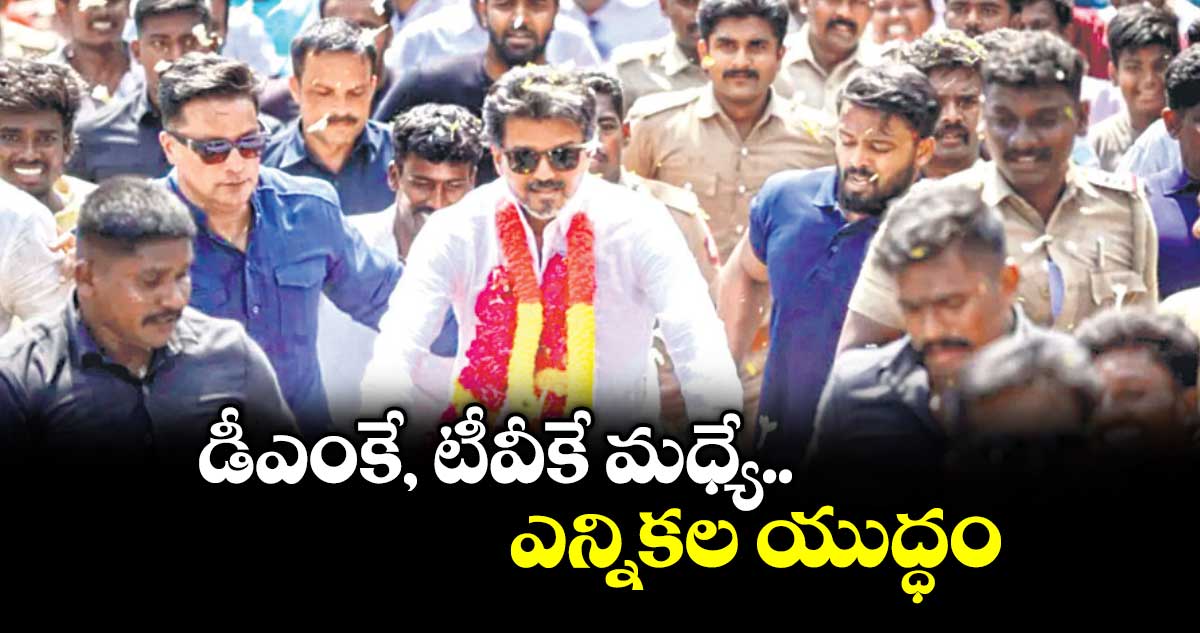 కన్యాకుమారి: తమిళనాడు అసెంబ్లీ ఎన్నికల్లో చతుర్ముఖ పోటీ లేదని, అధికార పార్టీ డీఎంకే, టీవీకే మధ్య జరుగుతున్న యుద్ధమని తమిళగ వెట్రి కజగం (టీవీకే) అధ్యక్షుడు విజయ్ స్పష్టం చేశారు. ఆదివారం కన్యాకుమారిలో జరిగిన భారీ బహిరంగ సభలో ఆయన మాట్లాడారు. రాష్ట్రంలో నెలకొన్నది 40 కోణాల పోటీ కాదని, కేవలం ప్రజలను ప్రేమించే విజయ్, ప్రజావ్యతిరేక స్టాలిన్ ప్రభుత్వానికి మధ్య జరుగుతున్న పోరాటమని పేర్కొన్నారు.