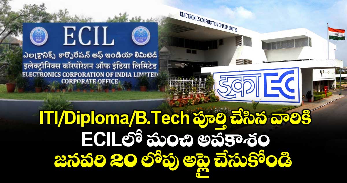 ఎలక్ట్రానిక్స్ కార్పొరేషన్ ఆఫ్ ఇండియా (ఈసీఐఎల్) టెక్నీషియన్, సూపర్వైజర్, ఇతర పోస్టుల భర్తీకి నోటిఫికేషన్ విడుదల చేసింది. ఆసక్తి, అర్హత గల అభ్యర్థులు ఆన్లైన్లో అప్లై చేసుకోవచ్చు. అప్లికేషన్లు సమర్పించడానికి చివరి తేదీ జనవరి 20.
