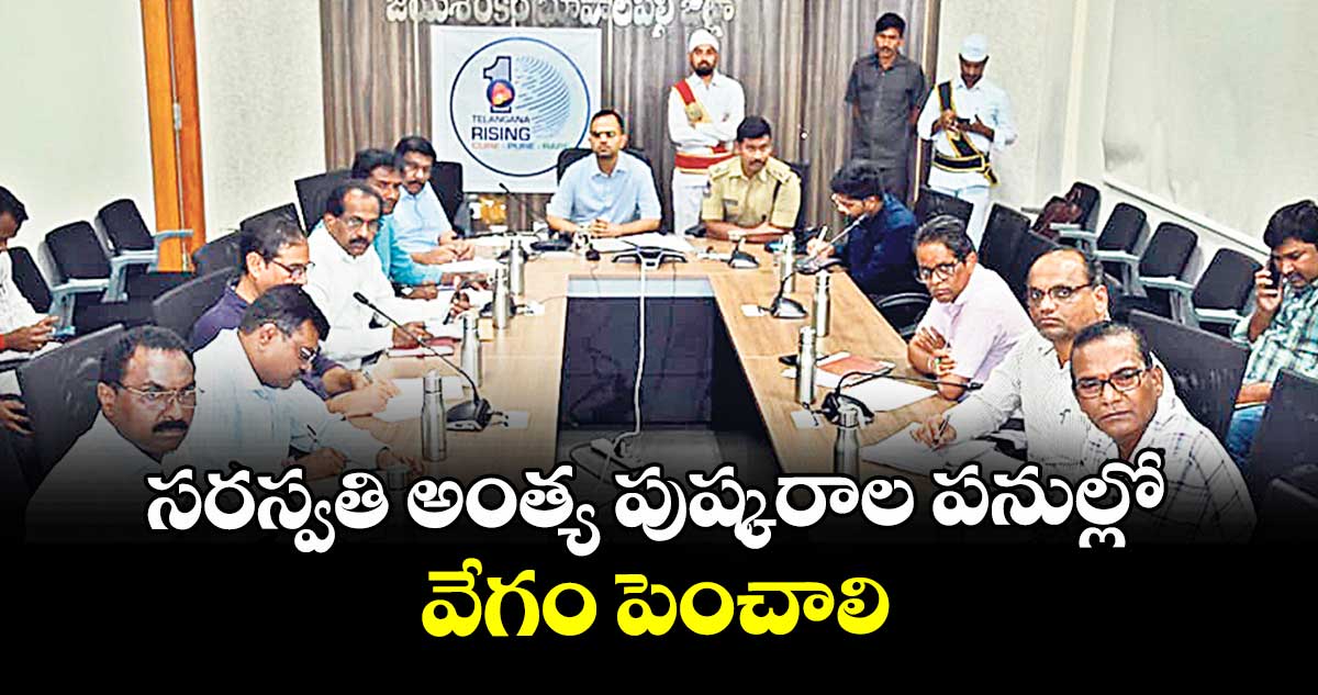 సరస్వతి ఆది పుష్కరాల్లో చేపట్టిన శాశ్వత ప్రాతిపదిక పనులను త్వరగా పూర్తి చేయాలని, ప్రసాదం కౌంటర్, రెయిలింగ్, సరస్వతి విగ్రహం వద్ద పెయింట్ వర్క్స్ గ్రానైట్ పర్చడం, అర్చ్ ల నిర్మాణం, విద్యుత్ పనులు, పెయింట్ పనులు పూర్తి చేయాలని ఆదేశించారు. సమావేశంలో జయశంకర్ భూపాలపల్లి కలెక్టర్ రాహుల్ శర్మ, ఎస్పీ సంకీర్త్, అడిషనల్ కలెక్టర్ ఆశోక్ కుమార్, కాటారం సబ్ కలెక్టర్ మయాంక్ సింగ్ తదితరులు పాల్గొన్నారు.
