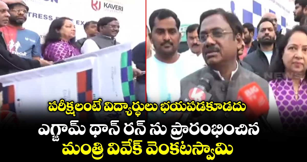 పరీక్షల విషయంలో విద్యార్థులు ఆందోళన పడకుండా.. స్టూడెంట్స్ కు అవగాహన కల్పించేందుకు రాయ్ దుర్గ్ లోని టీ వర్క్స్ దగ్గర డాక్టర్ బీఆర్ అంబేద్కర్ ఎడ్యుకేషనల్ ఇన్ స్టిట్యూట్ మెంటర్ సంస్థ 3K, 5K, 10K ఎగ్జామ్ థాన్ రన్ నిర్వహించింది. ఈ కార్యక్రమాన్ని మంత్రి వివేక్ వెంకటస్వామి , డాక్టర్ బీఆర్ అంబేద్కర్ ఎడ్యుకేషనల్ ఇనిస్టిట్యూట్స్ కరస్పాండెంట్ సరోజ వివేక్ ప్రారంభించారు. వారితో పాటు ఈ రన్ లో 2 వేల మంది విద్యార్థులు పాల్గొన్నారు.
