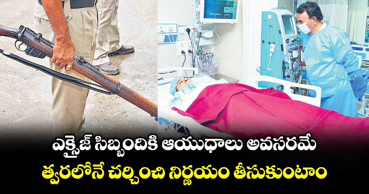 హైదరాబాద్, వెలుగు: స్మగ్లర్ల దాడుల నుంచి రక్షణ పొందేందుకు ఎక్సైజ్ శాఖ సిబ్బందికి కూడా ఆయుధాలు అందించే అంశాన్ని పరిశీలిస్తున్నామని ఎక్సైజ్ శాఖ మంత్రి జూపల్లి కృష్ణారావు ప్రకటించారు. హైదరాబాద్లోని నిమ్స్ హాస్పిటల్లో చికిత్స పొందుతున్న ఎక్సైజ్ కానిస్టేబుల్ సౌమ్యను ఆయన సోమవారం పరామర్శించారు. ఈ సందర్భంగా జూపల్లి మాట్లాడారు.