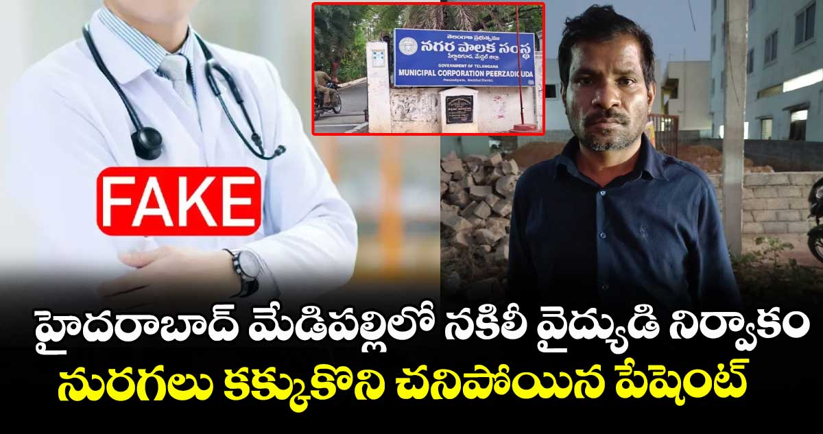 హైదరాబాద్ లో నకిలీ వైద్యుడి నిర్వాకం, నిర్లక్ష్యం ఒక నిండు ప్రాణాన్ని బలితీసుకుంది. జ్వరం వచ్చిందని వచ్చిన పేషెంట్ కు ఏం ఇంజెక్షన్ ఇచ్చాడో గానీ.. కాసేపటికే నురగలు కక్కుకుని చనిపోవడం కలకలం రేపింది. మేడిపల్లి పోలీస్ స్టేషన్ పరిధి ఫిర్జాదిగూఢలో బుధవారం (జనవరి 29) రాత్రి జరిగింది ఈ ఘటన.