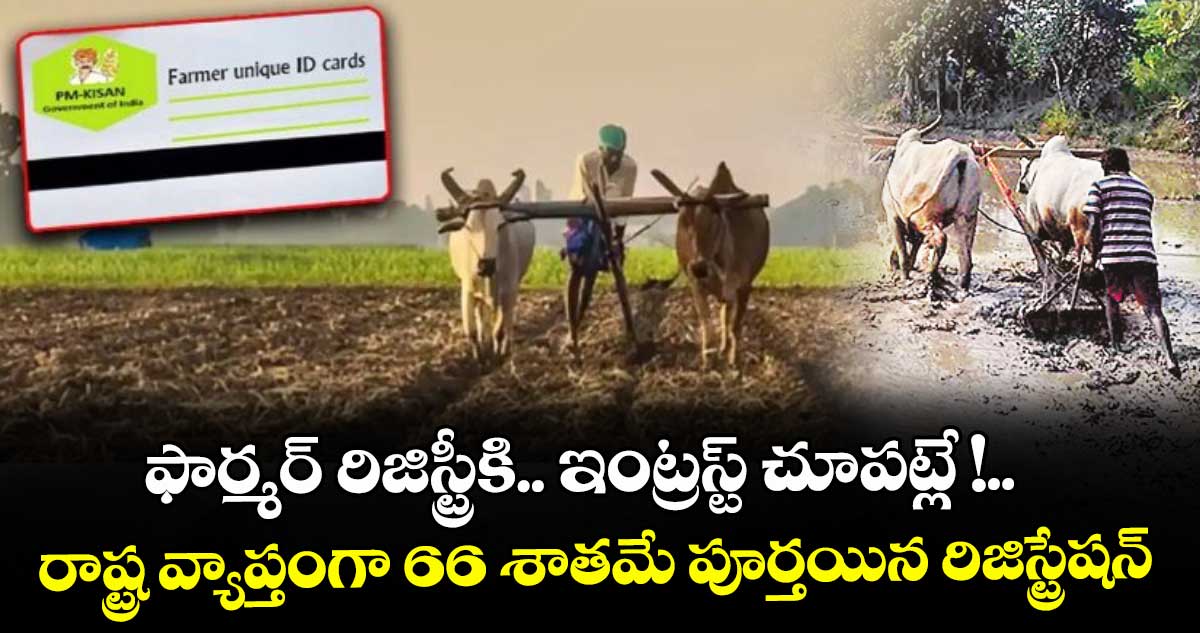 రూల్స్ ప్రకారం ఐటీ చెల్లించే వారికి సెంట్రల్ గవర్నమెంట్ స్కీమ్స్ వర్తించవు. దీంతో తమ పేరున వ్యవసాయ భూమి ఉన్నప్పటికీ ఇన్కం ట్యాక్స్ చెల్లించే ఉద్యోగులు ఫార్మర్ రిజిస్ట్రేషన్కు ఆసక్తి చూపడం లేదు. మరో వైపు చిన్న, సన్నకారు రైతులకు ఈ రిజిస్ట్రేషన్పై అవగాహన లేకపోవడంతో అటు వైపు వెళ్లడం లేదు. ఫార్మర్ రిజిస్ట్రేషన్ చేయించుకునేందుకు మరో నెల మాత్రమే గడువు ఉంది. ప్రస్తుతం రాష్ట్ర వ్యాప్తంగా 66 శాతం రిజిస్ట్రేషన్ ప్రక్రియ మాత్రమే పూర్తి కాగా.. మొత్తం 100 శాతం పూర్తి కావడానికి మరో మూడు నుంచి నాలుగు నెలల సమయం పట్టే అవకాశం ఉంది.