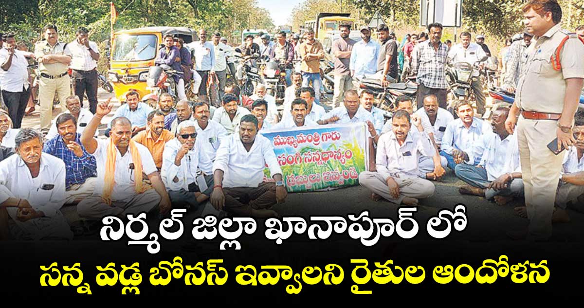 ఖానాపూర్, వెలుగు: గతేడాది యాసంగి సీజన్ సన్నధ్యానం బోనస్ డబ్బులను ప్రభుత్వం వెంటనే చెల్లించాలని డిమాండ్ చేస్తూ నిర్మల్ జిల్లా ఖానాపూర్ రైతులు ఆందోళన చేశారు. సోమవారం పట్టణ శివారులోని కుమ్రం భీం చౌరస్తా వద్ద బాసర, మంచిర్యాల ప్రధాన రహదారిపై రాస్తారోకో చేశారు. ఈ సందర్భంగా రైతులు మాట్లాడుతూ.. కాంగ్రెస్ ప్రభుత్వం రైతులకు చెల్లించాల్సిన సన్న వడ్ల బోనస్ను జమ చేయకుండా కాలయాపన చేస్తోందని ఆరోపించారు.