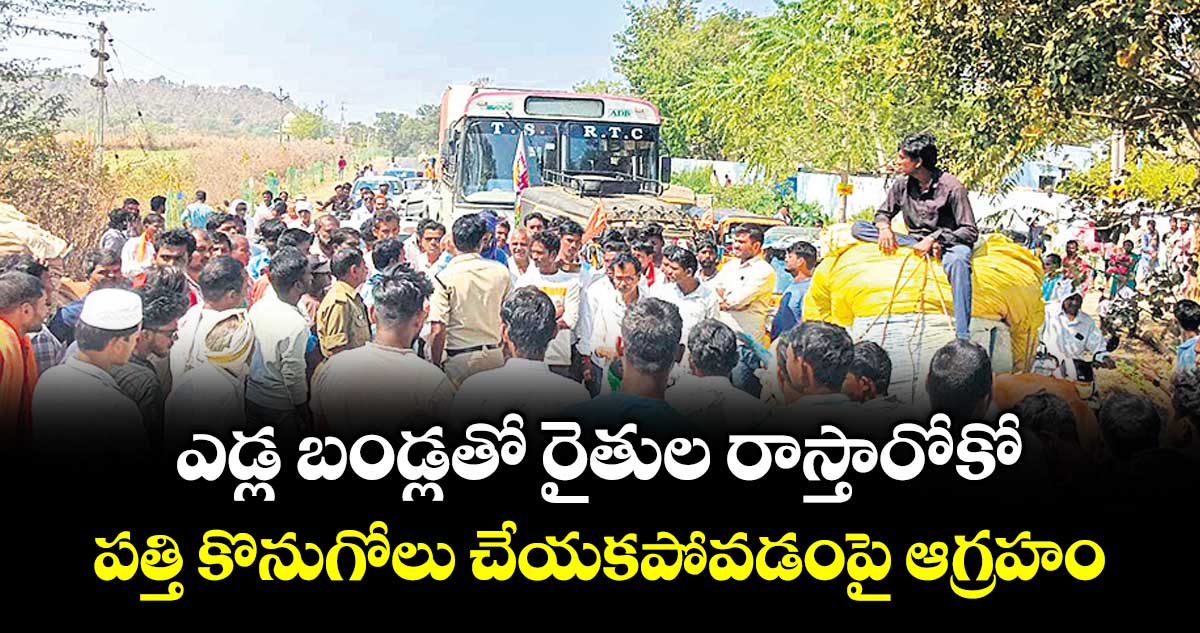 ఇంద్రవెల్లి, వెలుగు: ఆదిలాబాద్ జిల్లా ఇంద్రవెల్లి మండల కేంద్రంలోని మిత్తల్ జిన్నింగ్ మిల్లులో కేస్లాగూడ గ్రామానికి చెందిన రైతులు మెస్రం మోతీరాం, భీంరావు పత్తిని సీసీఐ అధికారులు కొనుగోలు చేయకపోవడంతో ఆందోళనకు దిగారు. మంగళవారం ప్రధాన రహదారిపై ఎడ్ల బండ్లతో రాస్తారోకో చేపట్టారు. అరగంట పాటు ట్రాఫిక్ కు అంతరాయం ఏర్పడింది. ఈ సందర్భంగా రైతులు మాట్లాడుతూ ఎడ్ల బండ్లు, చిన్న వెహికల్స్లో తీసుకొస్తున్న పత్తిని సీసీఐ అధికారులు కొనేందుకు నిరాకరిస్తున్నారని తెలిపారు.