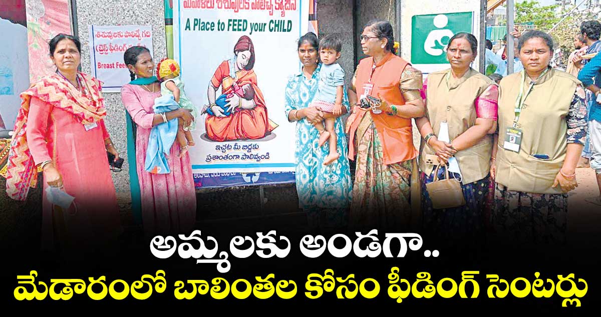 మేడారం మహా జాతరకు వచ్చే బాలింతల కోసం మహిళా శిశు సంక్షేమ శాఖ ఆధ్వర్యంలో మొదటి సారిగా ఫీడింగ్ సెంటర్లను ఏర్పాటు చేశారు. జాతరలో మొత్తం 15 చోట్ల పాలిచ్చే తల్లులు కేంద్రాలను ఏర్పాటు చేసినట్లు ఆఫీసర్లు తెలిపారు. ప్రతి కేంద్రం వద్ద మంచినీటి సదుపాయంతో పాటు ఉక్కపోతతో ఇబ్బంది పడకుండా ఫ్యాన్లు సైతం ఏర్పాటు చేశారు.