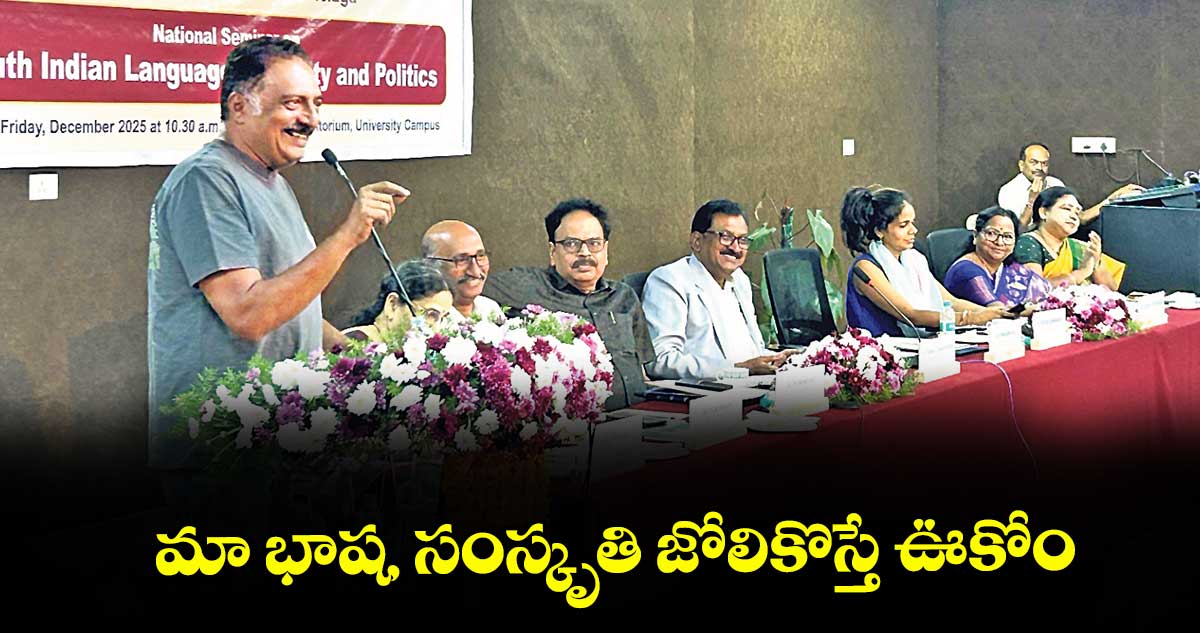 బీఆర్ అంబేద్కర్ ఓపెన్ యూనివర్సిటీలో ‘దక్షిణ భారత భాషలు -గుర్తింపు, రాజకీయాలు’ అనే అంశంపై శనివారం జాతీయ సదస్సు జరిగింది. ఈ కార్యక్రమానికి ప్రకాశ్ రాజ్ చీఫ్ గెస్ట్గా హాజరై, మాట్లాడారు. ‘‘మన భాష, మన సంస్కృతి మన ధ్వని, మన గర్వం, మన గుర్తింపు.. దీన్ని ఎవరు దెబ్బతీయాలని చూసినా.. ఎట్టి పరిస్థితుల్లో మా ఉనికిని వదులుకోం. నా మాతృభాష కన్నడ. కానీ, నేను తెలుగుతో సహా 7 భాషలు మాట్లాడగలను. అన్ని భాషలనూ గౌరవిస్తా. కానీ, కొందరు మాత్రం తమదే గొప్ప భాష అని, అదే పురాతనమైనదని ఫీల్ అవుతుంటరు.