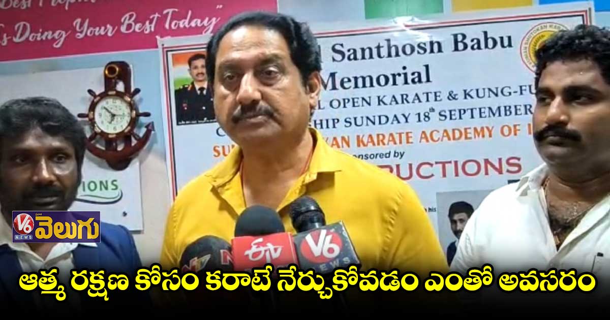 హైదరాబాద్ : ఆత్మ రక్షణ కోసం కరాటే నేర్చుకోవడం ఎంతో అవసరం అని సినీ నటుడు సుమన్ అన్నారు. మహిళల్లో మనోధైర్యం నింపేందుకు, ఆత్మస్థైర్యం కోసం కరాటే చాలా తోడ్పడుతుందని చెప్పారు. అమీర్ పేట్ లో నిర్వహించిన కార్యక్రమంలో జాతీయ కరాటే ఛాంపియన్ షిప్ ట్రోఫీ, బ్రోచర్ ను ఆవిష్కరించారు. ఈ సందర్భంగా సుమన్ మాట్లాడారు. ప్రతి ఒక్కరూ ఆత్మస్థైర్యం, దేహ ధారుడ్యం కలిగి ఉండేందుకు మార్షల్ ఆర్ట్స్ చాలా ఉపయోగపడుతుందని, దీన్ని నేర్చుకోవాలని తెలిపారు.