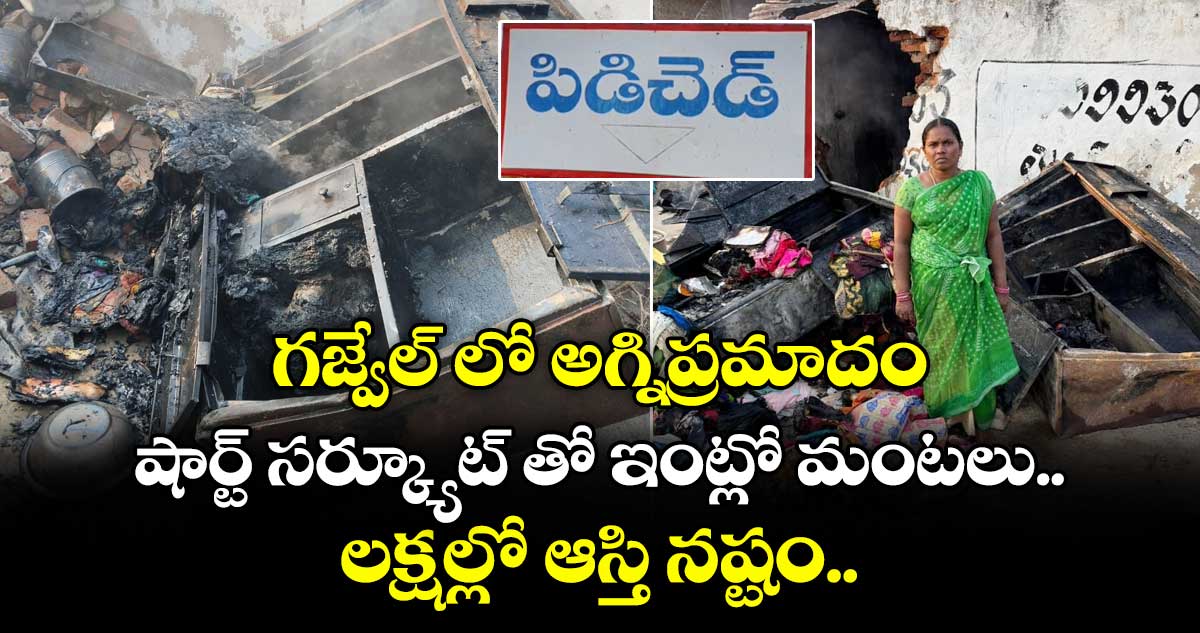 సిద్ధిపేటజిల్లా గజ్వేల్ లో షార్ట్ సర్క్యూట్ కారణంగా ఓ ఇంట్లో మంటలు చెలరేగాయి. గజ్వేల్ మండలం పిడిచెడ్ గ్రామంలో జరిగింది ఈ ఘటన. మంగళవారం ( మార్చి 10 ) జరిగిన ఈ ఘటనకు సంబంధించి వివరాలిలా ఉన్నాయి.. గ్రామానికి చెందిన జ్యోతి ఒంటరి మహిళ. కూలి పనికి వెళ్లి జీవనం సాగిస్తున్న జ్యోతి ఇవాళ కూడా కూలి పనికి వెళ్ళింది. సాయంత్రం ఇంటికి తిరిగి వచ్చేసరికి.. ఇంట్లో మంటలు వ్యాపించాయి.