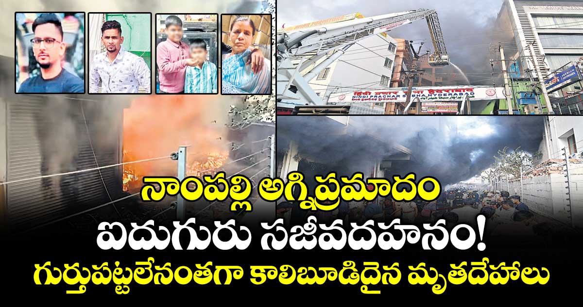 హైదరాబాద్ / బషీర్బాగ్, వెలుగు: హైదరాబాద్లో జరిగిన ఘోర అగ్నిప్రమాదంలో ఐదుగురు సజీవ దహనమయ్యారు. అబిడ్స్ నుంచి నాంపల్లి రైల్వేస్టేషన్ వెళ్లే రోడ్డులోని బచస్ ఫర్నిచర్ క్యాస్టిల్ షాపులో శనివారం మధ్యాహ్నం మంటలు చెలరేగి ఇద్దరు చిన్నారులు, ఓ మహిళ సహా వీరిని కాపాడేందుకు వెళ్లిన మరో ఇద్దరు మృతి చెందారు. ప్లాస్టిక్తో నిండిన పొగతో ఊపిరి ఆడక అక్కడిక్కడే ప్రాణాలు కోల్పోగా, డెడ్బాడీలు గుర్తించలేనంతగా కాలిబూడిదయ్యాయి. ఘటనా స్థలంలో ఫైర్, ఎన్డీఆర్ఎఫ్ సిబ్బంది రెస్క్యూ ఆపరేషన్ చేపట్టి 10 గంటల పాటు శ్రమించారు. కానీ మంటల్లో చిక్కుకున్న వారి ప్రాణాలను కాపాడలేక పోయారు. డెడ్బాడీలను ఆదివారం బయటకు