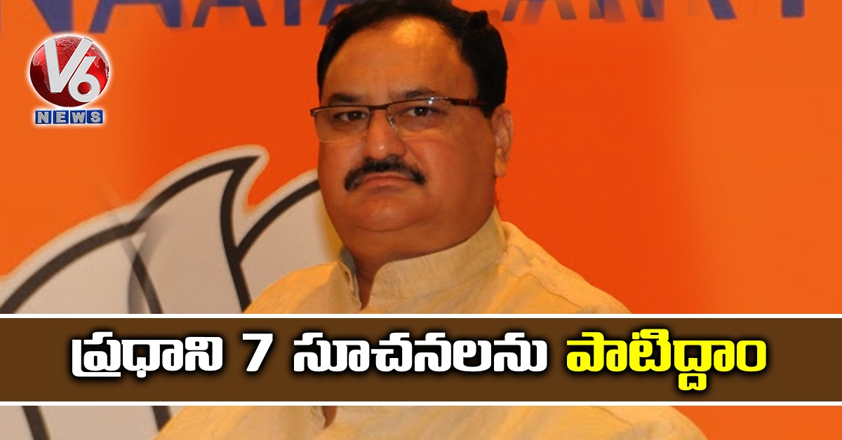 న్యూఢిల్లీ : కరోనా వ్యాప్తిని అడ్డుకోవటానికి లాక్ డౌన్ ను అందరం పాటిద్దామని బీజేపీ ప్రెసిడెంట్ జేపీ నడ్డా పిలుపునిచ్చారు. మహమ్మరిపై విజయం సాధించాలంటే ప్రధాని మోడీ చేసిన 7 సూచనలను తప్పకుండా పాటించాలని కోరారు. ” లాక్ డౌన్ ను అంకితభావంతో పాటిద్దాం. ఇప్పటి వరకు అన్ని సూచనలను మనమంతా ఐక్యంగా కొనసాగించాం. కరోనాను ఓడించేందుకు ఇదే స్ఫూర్తితో ముందుకు సాగుదాం” అని నడ్డా ట్వీట్ చేశారు. లాక్ డౌన్ లో పేదల ఆకలిని తీర్చాలని బీజేపీ కార్యకర్తలను నడ్డా కోరారు.