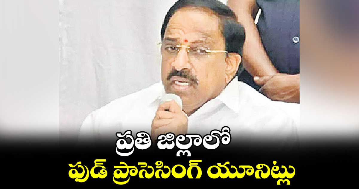 హైదరాబాద్, వెలుగు : ప్రతి జిల్లాలో ఫుడ్ ప్రాసెసింగ్ యూనిట్లు ఏర్పాటు చేయాలని, దీనికోసం ప్రతిపాదనలు సిద్ధం చేయాలని వ్యవసాయ మంత్రి మంత్రి తుమ్మల నాగేశ్వరరావు అధికారులను ఆదేశించారు. శుక్రవారం సెక్రటేరియట్లో అధికారులతో ఆయన సమావేశమై మాట్లాడారు. నిరుపయోగంగా ఉన్న ఫుడ్ పార్కులలోని ఖాళీ స్థలాలను గుర్తించి, మౌలిక సదుపాయాలు కల్పించి, ఉపయోగంలోకి తీసుకురావాలన్నారు.