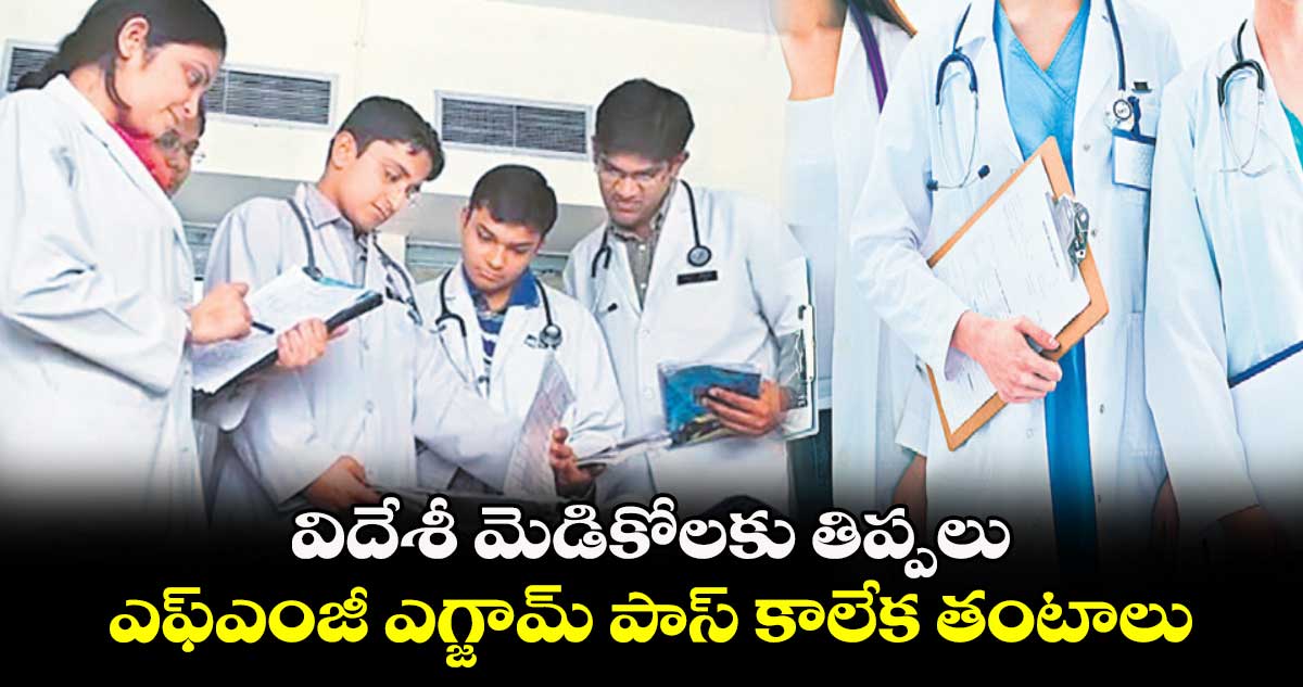 ఆయా దేశాల్లో ఎంబీబీఎస్ పట్టా అందుకున్నా.. ఇక్కడికొచ్చాక నేషనల్ బోర్డు నిర్వహించే ఫారిన్ మెడికల్ గ్రాడ్యుయేట్స్ ఎగ్జాం (ఎఫ్ఎంజీఈ) పాస్ కాలేకపోతున్నారు. ఈ ఎగ్జామ్ పాస్ కాకుంటే, విదేశాల నుంచి తెచ్చుకున్న ఎంబీబీఎస్ పట్టా పనికిరాదు. ఆ పట్టాతో ఇక్కడ డాక్టర్గా ప్రాక్టీస్ చేయడానికి వీలుండదు. చివరి ఐదు ఎఫ్ఎంజీ ఎగ్జామ్స్లో కనీసం ఒక్కసారి కూడా పాస్ పర్సంటేజీ 30 శాతం దాటలేదు.