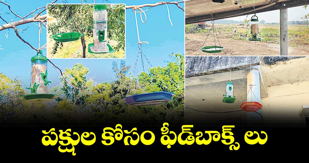 పక్షుల ఆకలి తీర్చేందుకు అటవీ శాఖ ప్రత్యేకంగా ఫీడ్బాక్స్లను ఏర్పాటు చేస్తోంది. కాగజ్నగర్ పరిధిలోని రవీంద్రనగర్ ఖర్జెల్లి ఫారెస్ట్ రేంజ్ ఆఫీస్ వద్ద, నర్సరీలో చిరు ధాన్యాలతో కూడిన బాక్స్లను చెట్లకు వేలాడదీశారు. పక్షుల దాహార్తిని తీర్చేందుకు నీళ్ల ట్రేలను సైతం ఏర్పాటు చేశారు. ఆహారం వేస్ట్ కాకుండా.. బాక్స్లకు ప్రత్యేకంగా రంధ్రాలు ఏర్పాటు చేయడంతో పాటు.. గింజలు అయిపోగానే తిరిగి నింపేలా ప్లాన్ చేశారు. - కాగజ్నగర్, వెలుగు