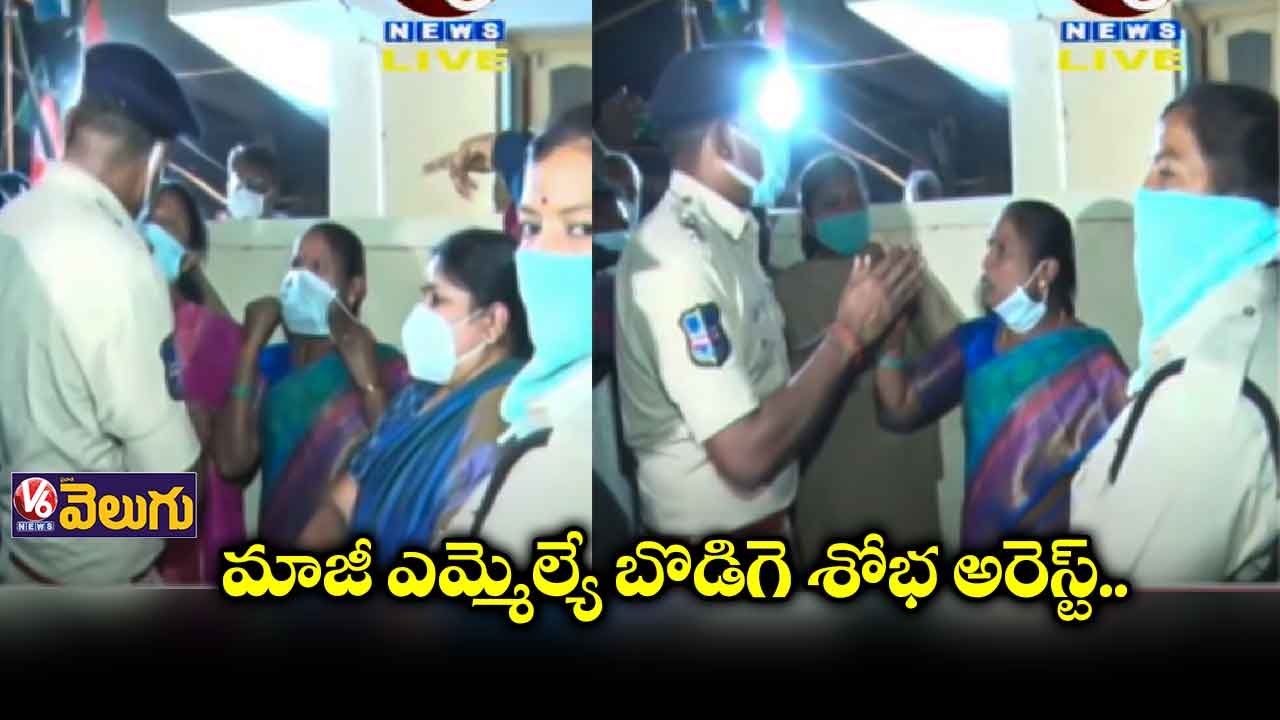 కరీంనగర్ బండి సంజయ్ జాగరణ దీక్షా శిబిరం వద్దకు వచ్చిన మాజీ ఎమ్మెల్యే బొడిగె శోభను అదుపులోకి తీసుకున్నారు పోలీసులు. శోభతో పాటు మరికొందరు మహిళా నేతలను అదుపులోకి తీసుకున్నారు పోలీసులు. ఎందుకు అడ్డుకుంటున్నారంటూ పోలీసులను ప్రశ్నించారు శోభ. కోవిడ్ నిబంధనలు ఉల్లంఘించారని, అదుపులోకి తీసుకున్నామన్నారు జగిత్యాల డిఎస్పి ప్రకాష్.పోలీసుల తీరును,ప్రభుత్వాన్ని తీవ్రంగా తప్పుబట్టారు బొడిగె శోభ.