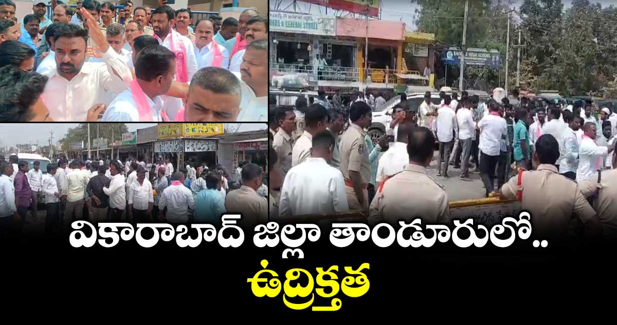 వికారాబాద్ జిల్లా తాండూరులో ఉద్రిక్తత చోటుచేసుకుంది. మున్సిపల్ ఎన్నికల సందర్భంగా పోలీసుల విధులకు ఆటంకం కల్గించారని మాజీ ఎమ్మెల్యే పైలెట్ రోహిత్ రెడ్డితో పాటు మరో 8 మందిపై పోలీసులు కేసు నమోదు అయిన సంగతి తెలిసిందే. ఈ క్రమంలో కేసు నమోదైన పైలెట్ రోహిత్ రెడ్డి తన అనుచరులు, బీఆర్ఎస్ కార్యకర్తలతో తన ఇంటి నుంచి భారీ ర్యాలీగా పోలీస్ స్టేషన్ చేరుకున్నారు. ముందస్తుగా పోలీస్ స్టేషన్ దగ్గర పోలీసులు భారీగా మొహరించారు. పీఎస్ ముందు భారీకేడ్లు ఏర్పాటు చేశారు. కాసేపు ప్రభుత్వానికి వ్యతిరేకంగా బీఆర్ఎస్ కార్యకర్తలు నినాదాలు చేశారు.