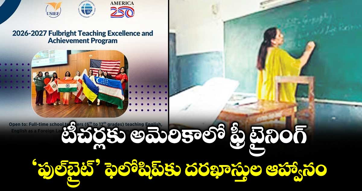 హైదరాబాద్, వెలుగు: రాష్ట్రంలోని సర్కారు స్కూళ్లలో పనిచేస్తున్న టీచర్లకు అమెరికాలో ఉచితంగా శిక్షణ పొందే చాన్స్ లభించనుంది. 2026–-27 సంవత్సరానికి ఫుల్బ్రైట్ టీచింగ్ ఎక్సలెన్స్ అండ్ అచీవ్మెంట్ ప్రోగ్రామ్ కింద స్కూల్ ఎడ్యుకేషన్ అధికారులు అప్లికేషన్లను ఆహ్వానిస్తున్నారు.