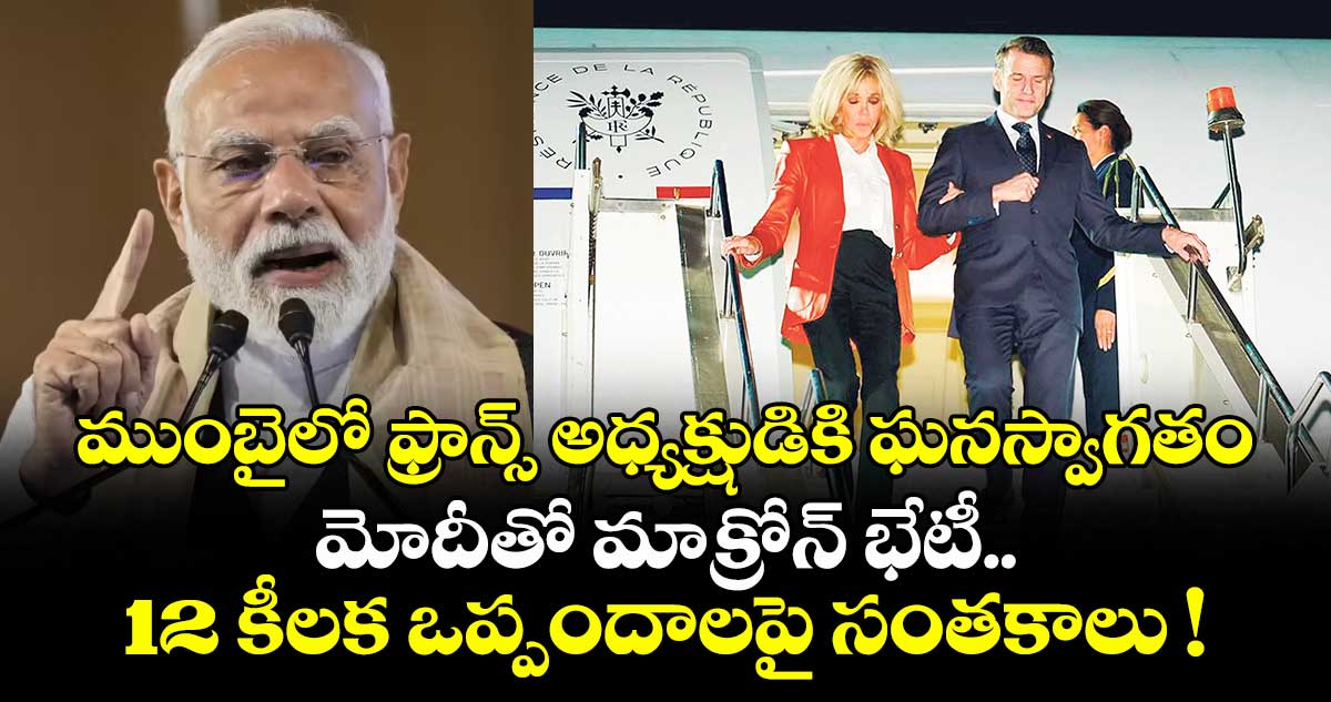 ముంబై: ప్రధాన మంత్రి నరేంద్ర మోదీ ఆహ్వానంతో మూడు రోజుల ఉన్నతస్థాయి పర్యటనకు భారత్ కు వచ్చిన ఫ్రాన్స్ అధ్యక్షుడు ఇమ్మాన్యుయేల్ మాక్రోన్ కు ఘనస్వాగతం లభించింది. ఇవాళ ముంబై విమానాశ్రయంలో మహారాష్ట్ర గవర్నర్ ఆచార్య దేవవ్రత్, ముఖ్యమంత్రి దేవేంద్ర ఫడ్నవీస్, ఉప ముఖ్యమంత్రులు ఏక్నాథ్ షిండే, సునేత్రా పవార్లు ఆయనకు స్వాగతం పలికారు.