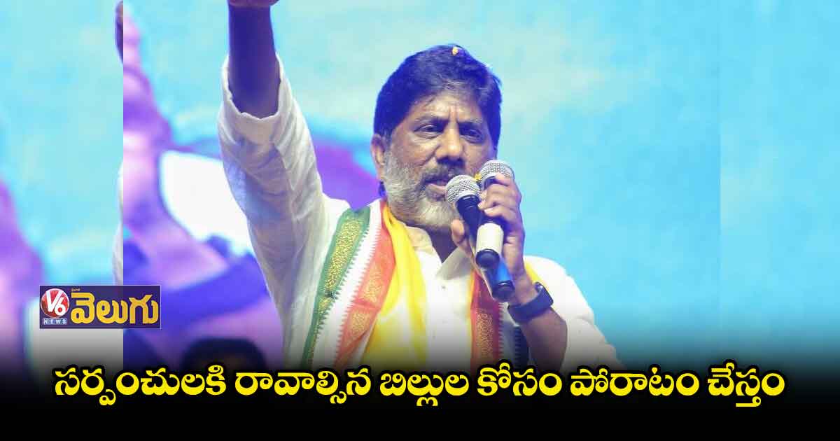 సర్పంచులకి రావాల్సిన బిల్లులు వచ్చేవరకు కాంగ్రెస్ పోరాటం చేస్తదని, ప్రభుత్వం వెంటనే స్థానిక సంస్థలకు ఇవ్వాల్సిన నిధులు విడుదల చేయాలని డిమాండ్ చేశారు సీఎల్పీ నేత భట్టి విక్రమార్క. రాష్ట్రంలో పల్లె ప్రగతి, పట్టణ ప్రగతి లో సర్పంచులు చేసిన పనులకి బిల్లులు ఇవ్వలేదని చెప్పారు. పెండింగ్ లో ఉన్న బిల్లులు ఇవ్వలేకపోవడంతో గత కొన్ని రోజులుగా వివిధ జిల్లాల్లో సర్పంచ్ లు ఆందోళనలు, నిరసనలు చేపడుతున్న సంగతి తెలిసిందే. ఈ క్రమంలో.. .జూన్ 06వ తేదీ సోమవారం మల్లు భట్టి విక్రమార్క మీడియాతో మాట్లాడారు. సర్పంచులకు అన్ని బిల్లు ఇచ్చేశామని మంత్రి చెబుతున్నారు, కానీ బిల్లులు రాక వడ్డీ కట్టడానికి సర్పంచులు ఉపాధి పనికి వెళుతున్నారని తెలిపారు. స్థానిక సంస్థల విధానాలు చాలా అధ్వాన్నంగా మారుతున్నాయని, స్థానిక సంస్థలకి ఇవ్వాల్సిన నిధులు వెంటనే రిలీజ్ చేయడమే కాకండా దీనిపై శ్వేతపత్రం విడుదల చెయాలని డిమాండ్ చేశారాయన. సర్పంచులంతా ఐక్యంగా కలసి కట్టుగా బిల్లులు వచ్చేదాకా పోరాటం చెయ్యాలని వారికి సూచించారు.