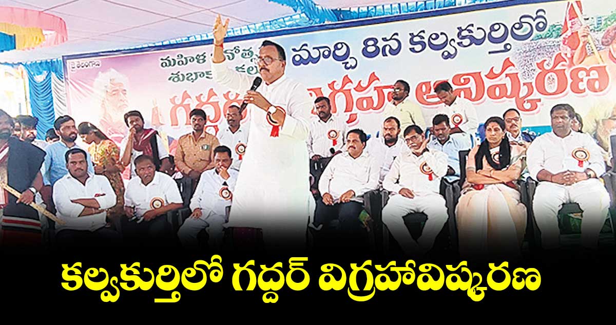 కల్వకుర్తి, వెలుగు : తెలంగాణ ప్రభుత్వం పేద ప్రజల సంక్షేమ కోసమే పనిచేస్తుందని నాగర్ కర్నూల్ ఎంపీ డా.మల్లు రవి, కల్వకుర్తి ఎమ్మెల్యే కశిరెడ్డి నారాయణ రెడ్డి అన్నారు. ఆదివారం కల్వకుర్తి తహసీల్దార్ ఆఫీస్ ఎదుట గద్దర్ విగ్రహాన్ని ఆవిష్కరించారు. తెలంగాణ సాంస్కృతిక సారధి చైర్మన్ వెన్నెల, విగ్రహావిష్కరణ కమిటీ చైర్మన్, న్యాయవాది లక్ష్మణ శర్మ అధ్యక్షతన జరిగిన కార్యక్రమంలో వారు మాట్లాడారు.