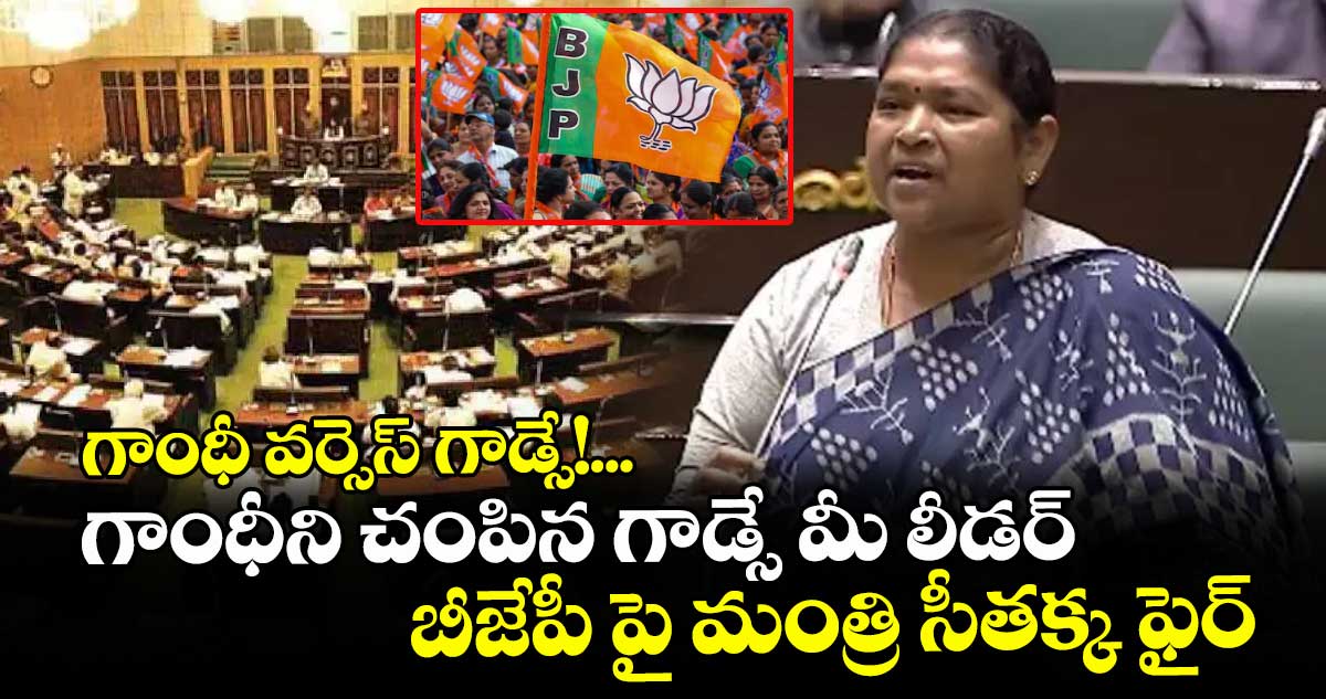 ‘గాంధీజీని కూడా మీరు తిడుతున్నారు.. గాంధీని కాల్చి చంపిన గాడ్సేను గొప్ప లీడర్గా కీర్తిస్తున్నారు’ అంటూ సీతక్క మండిపడ్డారు. గాడ్సే ఆర్ఎస్ఎస్ లీడర్ కావడం వల్ల ఆయనను గొప్ప పోరాట యోధుడుగా చిత్రీకరిస్తున్నారని ఎద్దేవా చేశారు. సీతక్క మాట్లాడుతుండగా బీజేపీకి చెందిన ఎమ్మెల్యేలంతా ఆమె మాటలకు అడ్డుతగిలారు. గాడ్సేను ఆర్ఎస్ఎస్ లీడర్ అని ఎట్లా చెబుతారని, గాడ్సేకు ఆర్ఎస్ఎస్లో సభ్యత్వం లేదని, ఆయనకు ఆర్ఎస్ఎస్కు సంబంధం లేదని స్వయంగా సుప్రీం కోర్టు ప్రకటించిన విషయాన్ని బీజేపీ ఎల్పీ నేత మహేశ్వర్ రెడ్డి గుర్తుచేశారు.