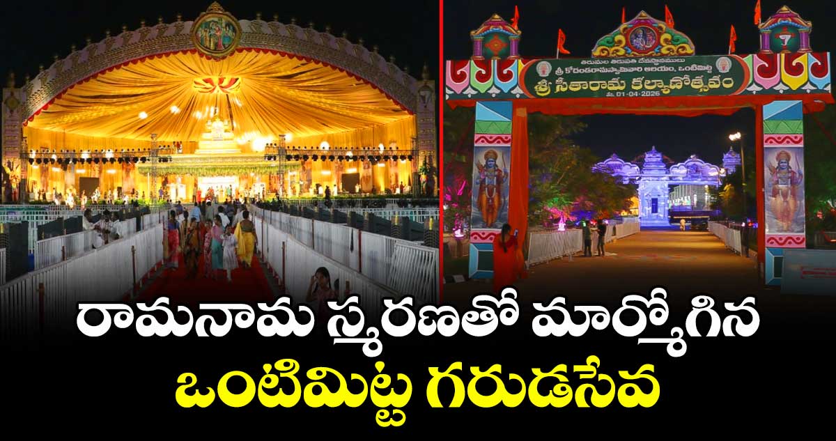 ఒంటిమిట్ట శ్రీ కోదండరామస్వామి వార్షిక బ్రహ్మోత్సవాల్లో భాగంగా ఐదో రోజు మంగళవారం (మార్చి 31) రాత్రి గరుడ వాహనంపై శ్రీ సీతారామలక్ష్మణులు భక్తులకు అభయమిచ్చారు. రాత్రి 7 నుండి వాహనసేవ వైభవంగా జరిగింది. కేరళ డ్రమ్స్, భక్తజన బృందాలు చెక్కభజనలు, కోలాటాలతో స్వామివారిని కీర్తిస్తుండగా, మంగళవాయిద్యాల నడుమ స్వామివారి ఊరేగింపు కోలాహలంగా జరిగింది. భక్తులు అడుగడుగునా కర్పూరహారతులు సమర్పించి స్వామివారిని దర్శించుకున్నారు.