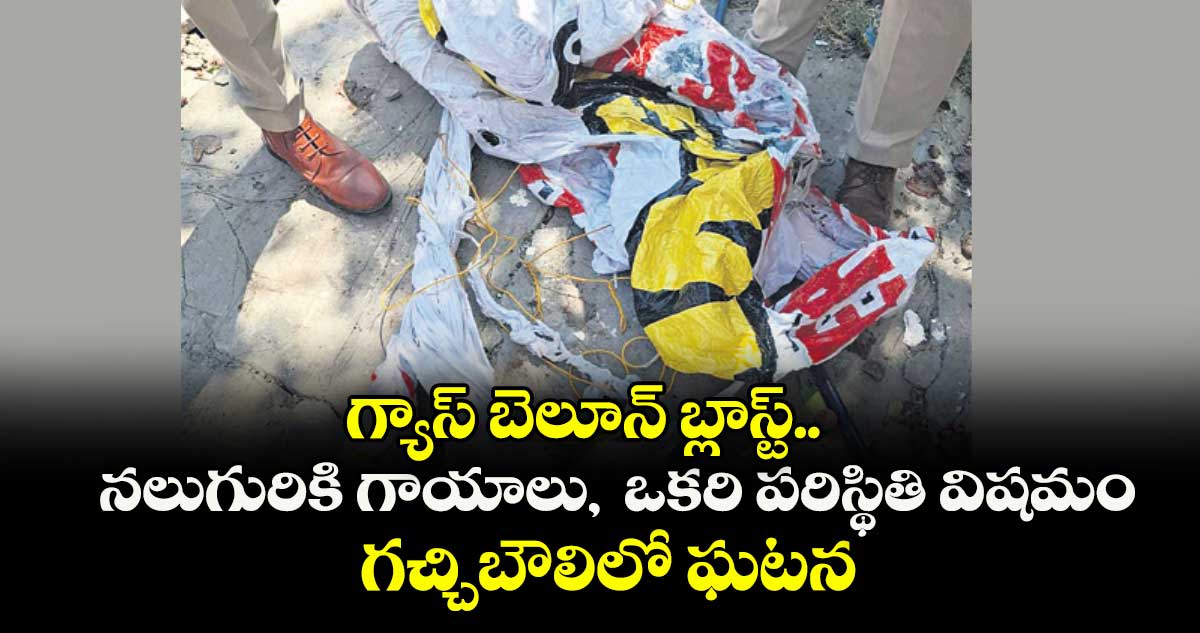 ఆ బెలూన్ను తొలగించేందుకు వలంటీర్లు ప్రసాద్, కృష్ణ, శ్రీను, సురేందర్ దగ్గరకు వెళ్లగా అది అకస్మాత్తుగా పేలింది. ఈ ఘటనలో నలుగురికి కాలిన గాయాలయ్యాయి. ప్రసాద్కు సుమారు 50 శాతం కాలిన గాయాలు కావడంతో పరిస్థితి విషమంగా ఉంది. కృష్ణ, సురేందర్, శ్రీనులకు సుమారు 30 శాతం గాయాలయ్యాయి. వారిని సమీపంలోని ప్రైవేట్ దవాఖానకు తరలించి చికిత్స అందిస్తున్నారు.