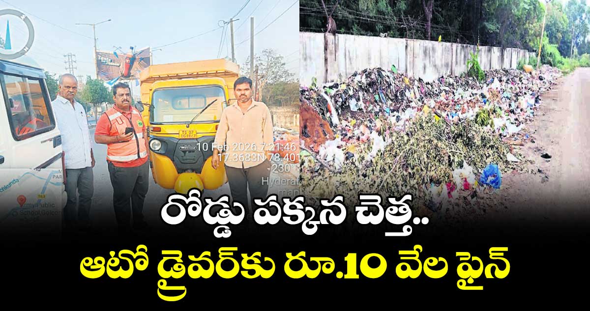 రెండు పక్కల చెత్తాచెదారాలను డంపు చేయడం జీహెచ్ఎంసీ యాక్ట్ ప్రకారం విరుద్ధమన్నారు. చెత్తను డంపు చేయడాన్ని తీవ్రంగా ఖండించిన ఉప కమిషనర్ రూ.10 వేల జరిమానా విధించారు. మరోసారి డంప్ చేస్తే వాహనాన్ని జప్తు స్తామని హెచ్చరించారు.