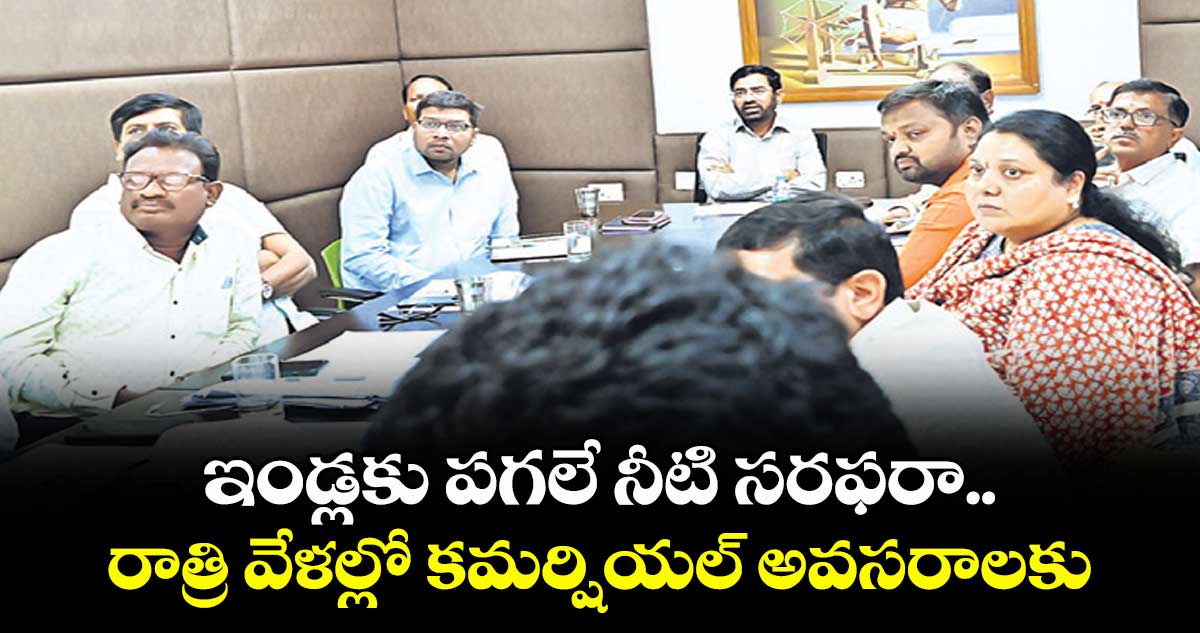 ఎక్కువ నీళ్లందుతున్న ప్రాంతాల నుంచి తక్కువగా అందుతున్న ప్రాంతాలకు మళ్లించి సర్దుబాటు చేయాలన్నారు. పగలు గృహ అవసరాలకు, రాత్రి కమర్షియల్ అవసరాలకు ట్యాంకర్లను డెలివరీ చేయడానికి ఏర్పాట్లు చేసుకోవాలని సూచించారు.